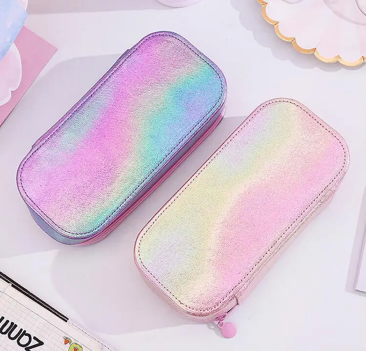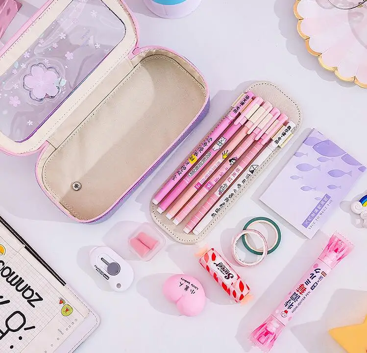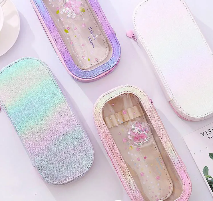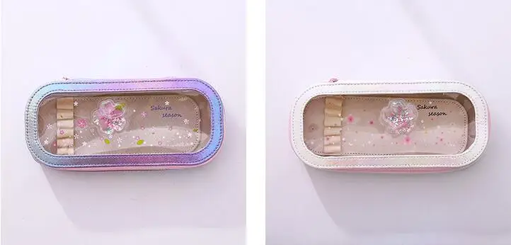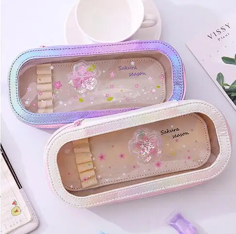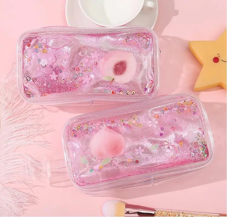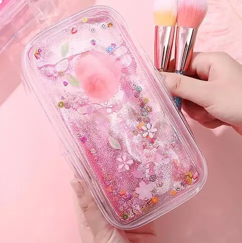 1 шт. кавайный чехол для карандаша и сверкающим узором сыпучего песка масла ПВХ пенал для карандашей Карандаш сумка, школьные принадлежности большой вместимости, прозрачное окошко для хранения