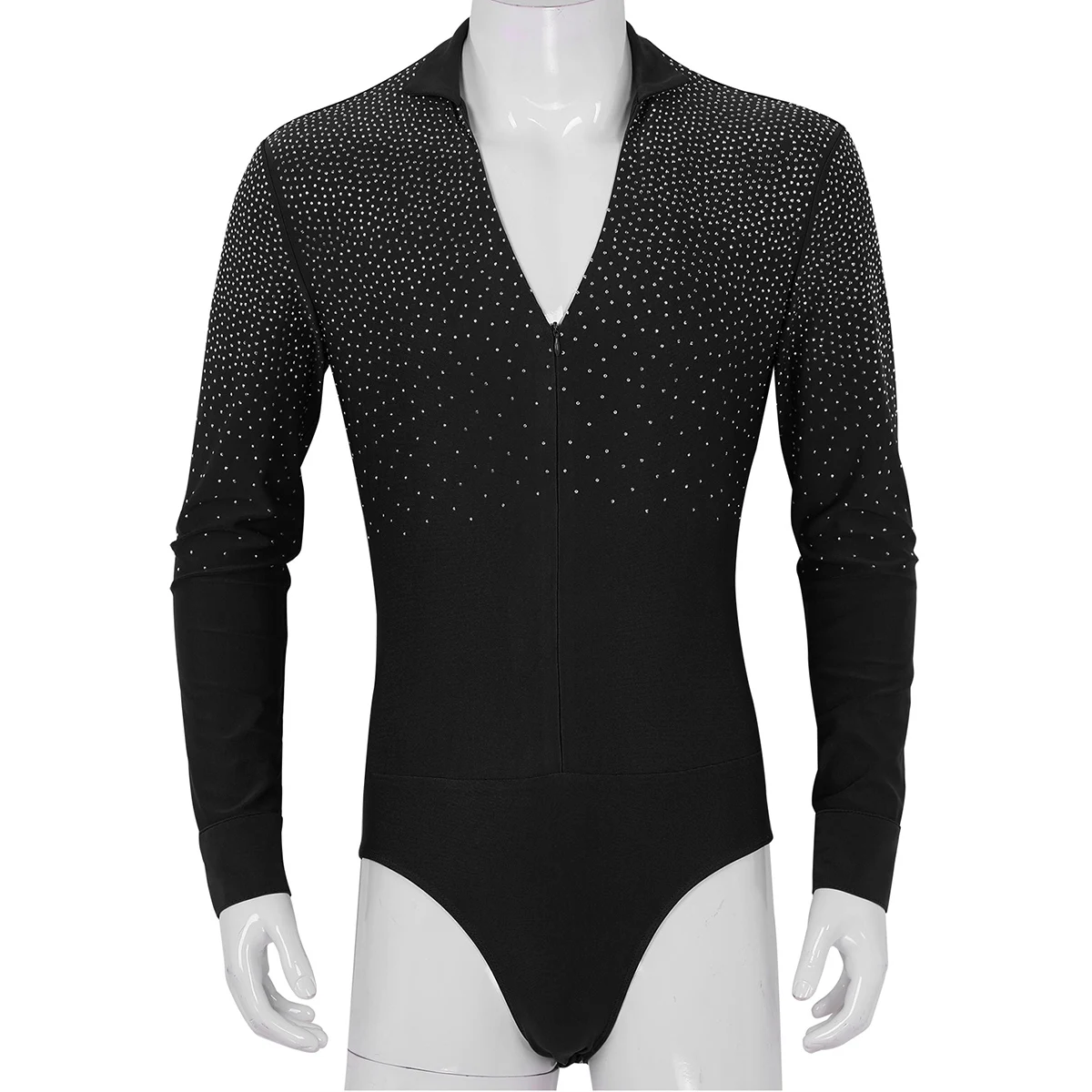 Мужские цельнокроеные бальные костюмы для латиноамериканских Танго Румба танцевальные трико для танцев с рубашкой боди рубашки топы, хорошая эластичная ткань. Одежда с длинным рукавом, v-образным вырезом и с воротником-стойкой, верхняя часть корсета с блестящие стразы, потайная застежка-молния спереди, с заниженным шаговым швом с 3 кнопки открытия. Классический и стильный, удобный крой, а также обеспечивает большую гибкость во время танцевального движения, это лучший выбор для вашего танца. Подходит для латинских, Танго, румбы, дамбы, сцены перфорации, Хэллоуин вечерние, профессиональные танцевальные соревнования и так далее. Пожалуйста, проверьте размер перед покупкой, ручная или машинная стирка в холодной воде.