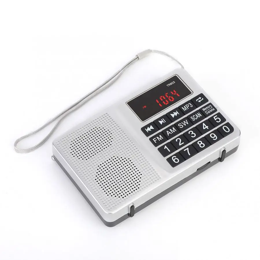 Легко настроить с TR603 AM FM коротковолновой радио как рождественский подарок для семьи; две отдельные ручки для регулировки громкости и регулировки управления. Большие и мягкие кнопки для старших. Простые в управлении кнопки на радио делают его хорошим для кого-то с плохим зрением. 3,5 мм AUX вход. Функция аудиовыхода подходит для планшетов, MP3, mp4-плееров и мобильных телефонов. Перезаряжаемая литиевая батарея 1000 мА (не 800) поддерживает более длительное время использования. Светодиодный экран, большие кнопки и портативный размер делают эту магнитолу удобным партнером в вашей повседневной жизни. Оснащен высококачественным динамиком 5 Вт высокой мощности и басовой диафрагмой, небольшой размер подходит для дома, улицы, офиса и других мест, удобных для переноски, отлично подходит для прогулок, похода, кемпинга, рюкзака. Коротковолновый радиоприемник с 21 дюймов антенная Опора лучшего приема. Удалите Предустановленная станция функции. Вы можете наслаждаться личным радио раз Подключите 3,5 мм наушник jack.