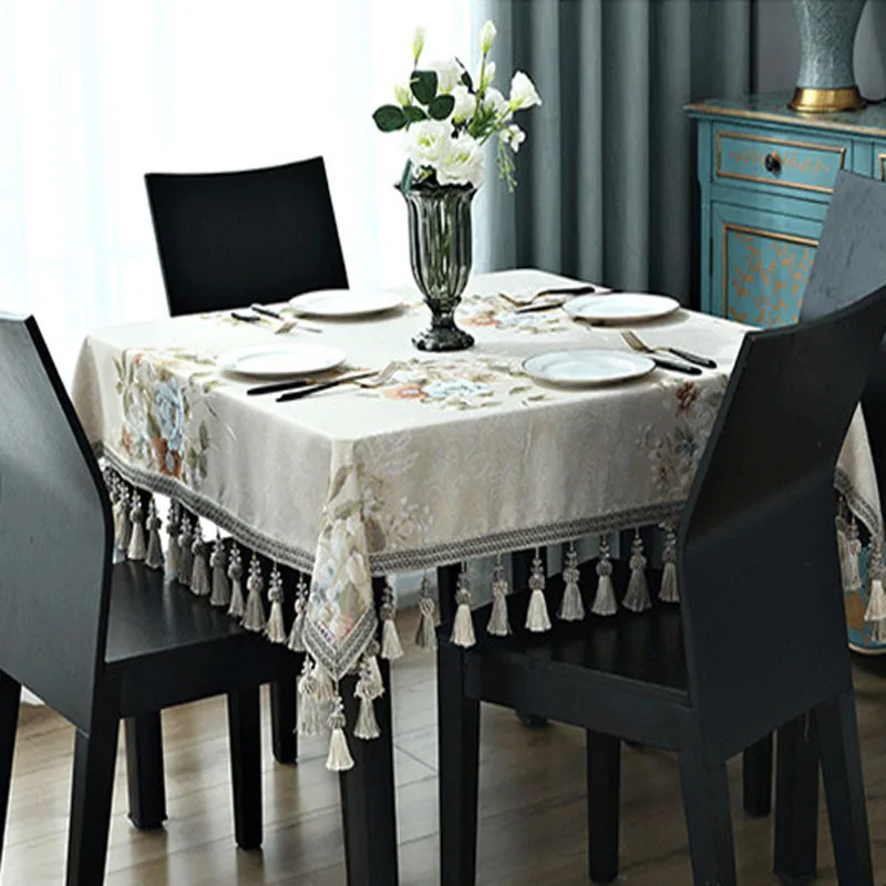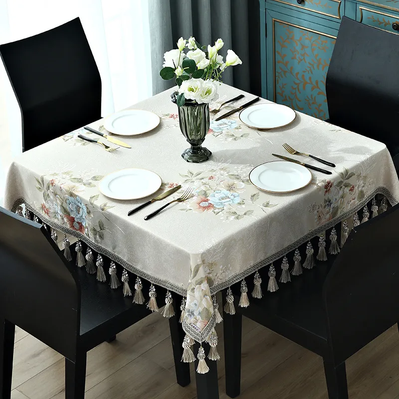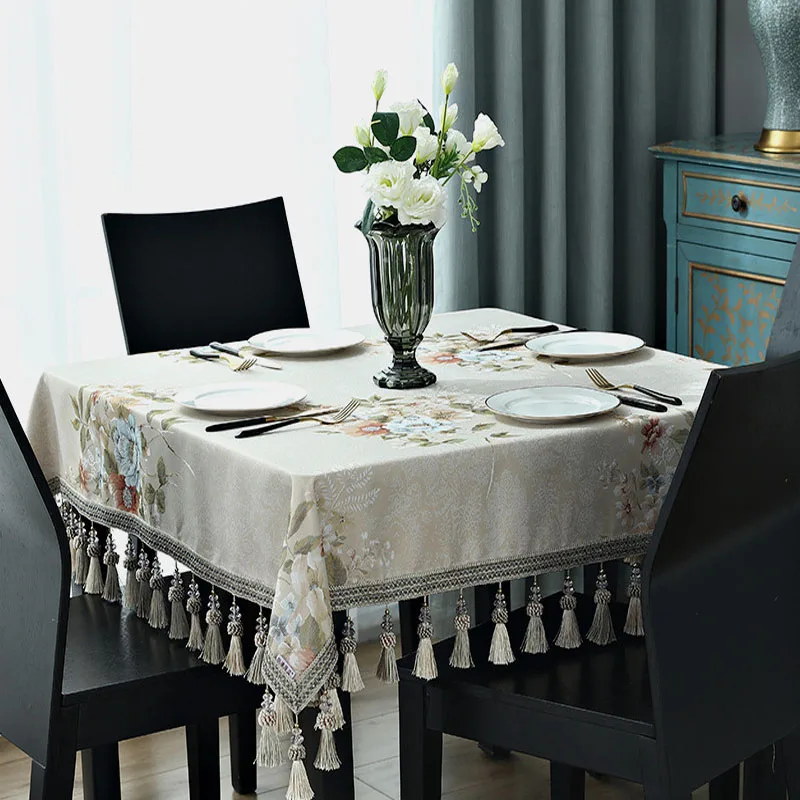 Многофункциональные элегантные скатерти, прямоугольная чайная скатерть, Жаккардовая скатерть с кисточками, романтические скатерти для обеденного стола