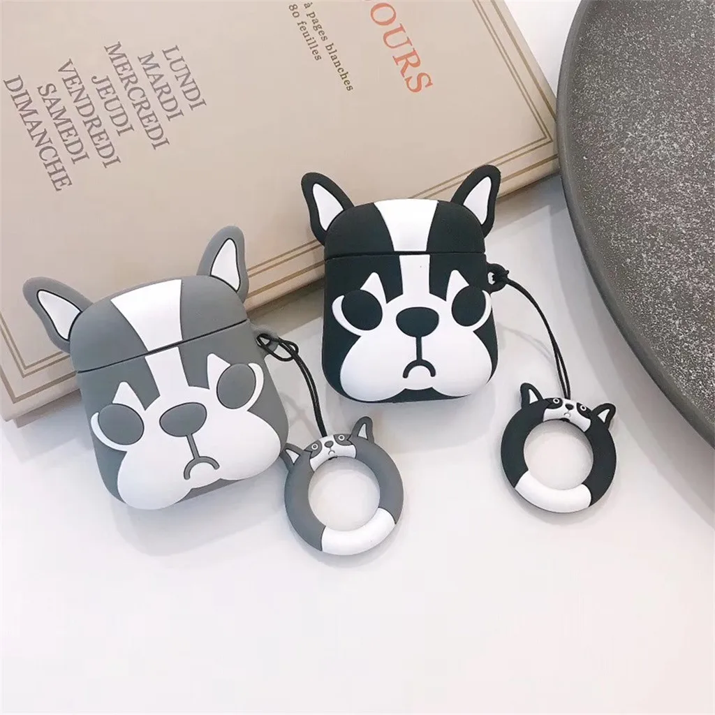 Защитный силиконовый чехол для Apple Air pods, милый дизайн собаки с кольцом для ключей