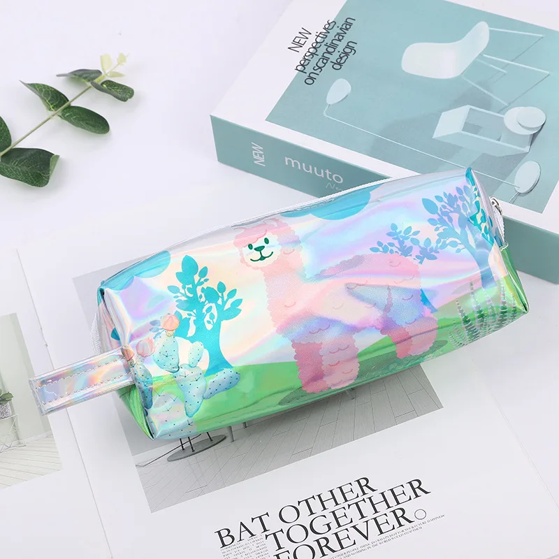 Лазерная искусственная кожа, альпака, кактус, милый мультяшный зеленый рисунок, ручка, большая емкость, пенал, канцелярская сумка, чехол для карандаша, принадлежности для студентов