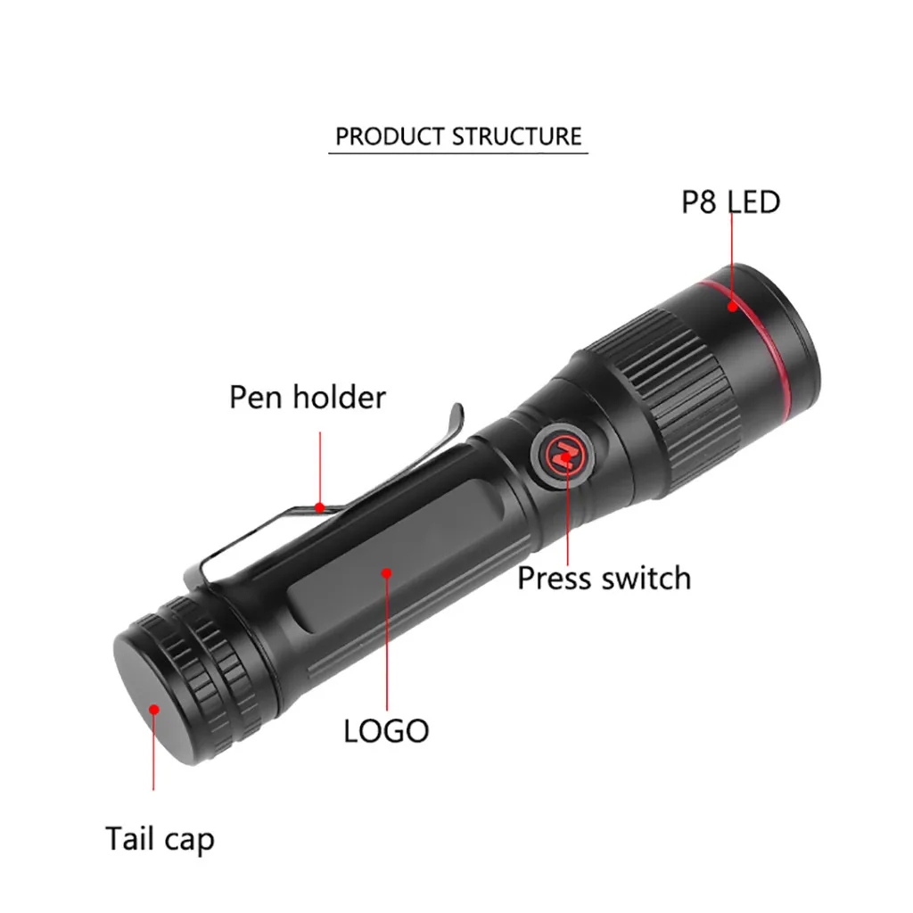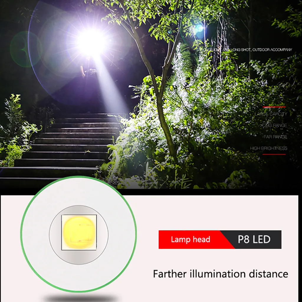 Алюминий сплав P8 светодиодный светильник USB Перезаряжаемый фонарик водонепроницаемый 1x18650