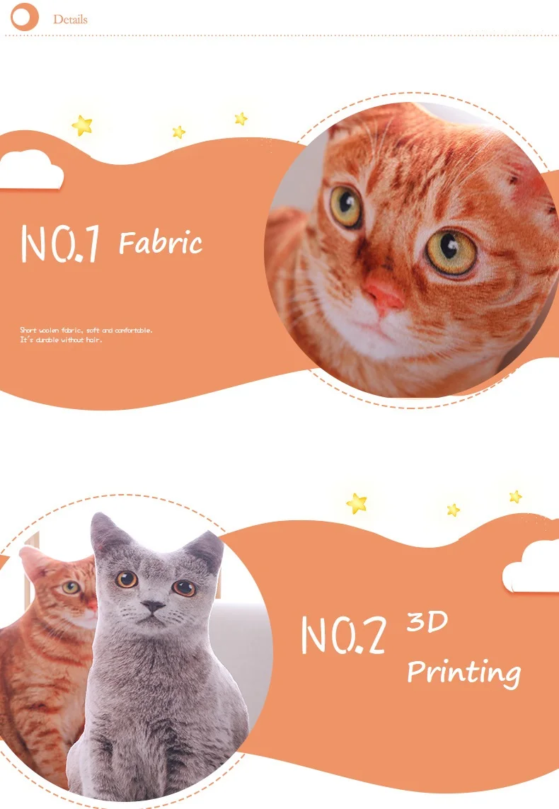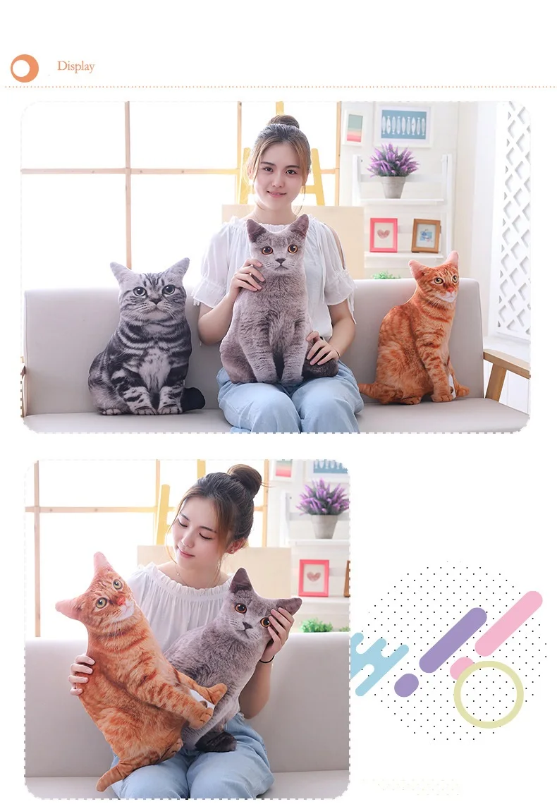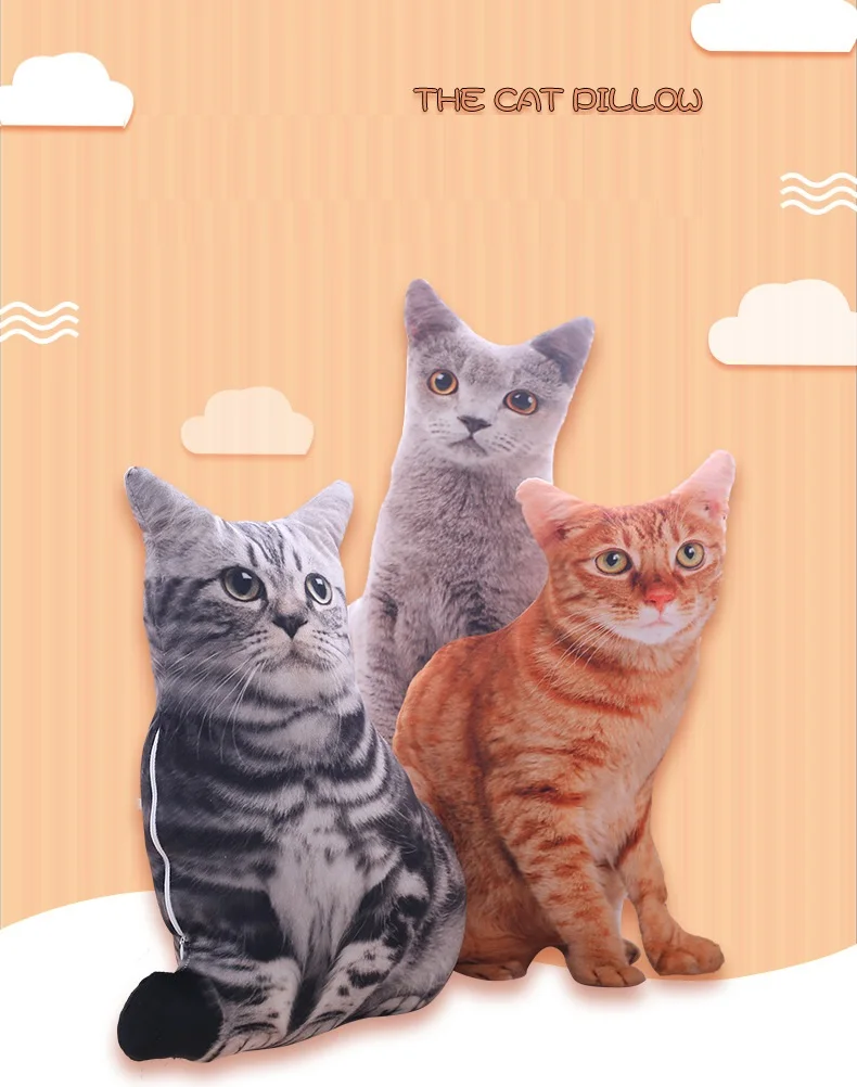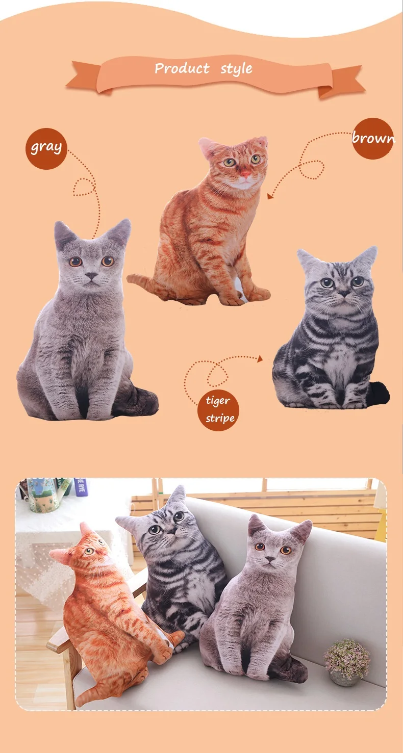 Имитация 3D кошка Ткань: Ультра-мягкий короткий плюш Наполнитель: экологически чистый ПП хлопок Размер: 50 см; 500 г