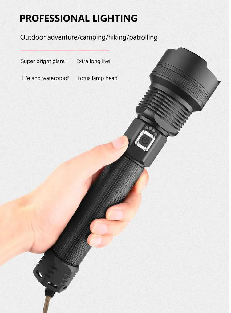 Название Светодиодный фонарик Бренд XANES Модель 1907 Материал Алюминий Сплав Режим Сильный светильник-слабый светильник-вспышка Лампочка-бисерина XHP70 Люмен 1800-1900Lumens Переключатель Пресс переключатель Режим масштабирования Телескопический зум-объектив Режим зарядки USB Батарея 2X18650/2x26650 Батарея(Не входит в комплект) Размеры 25.5x6x4cm Вес нетто 411 г