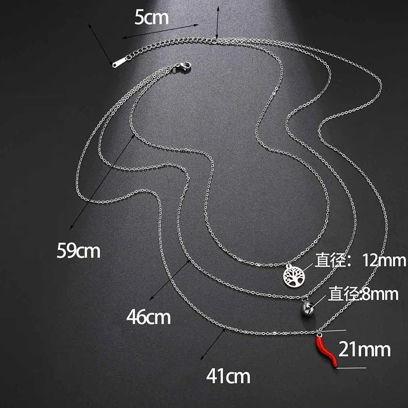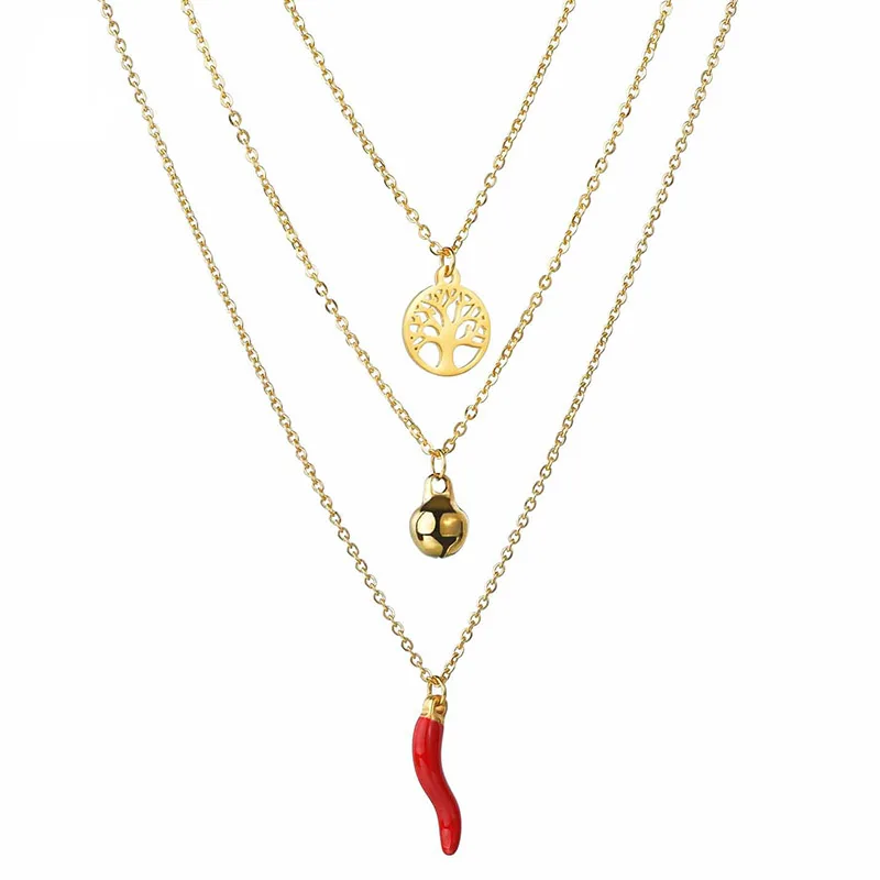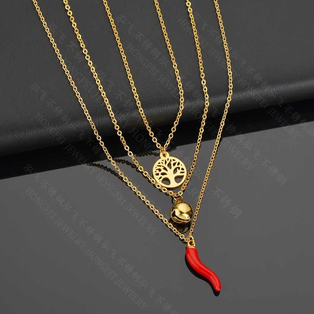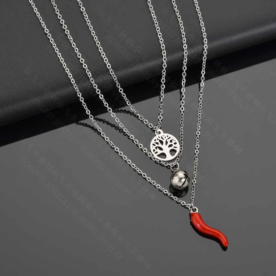 Bohemian Tree of Life Multi-layer Choker Necklaces Stainless Steel Chili Pendant Necklace Trendy Hot Pepper Bell Chain Jewelry