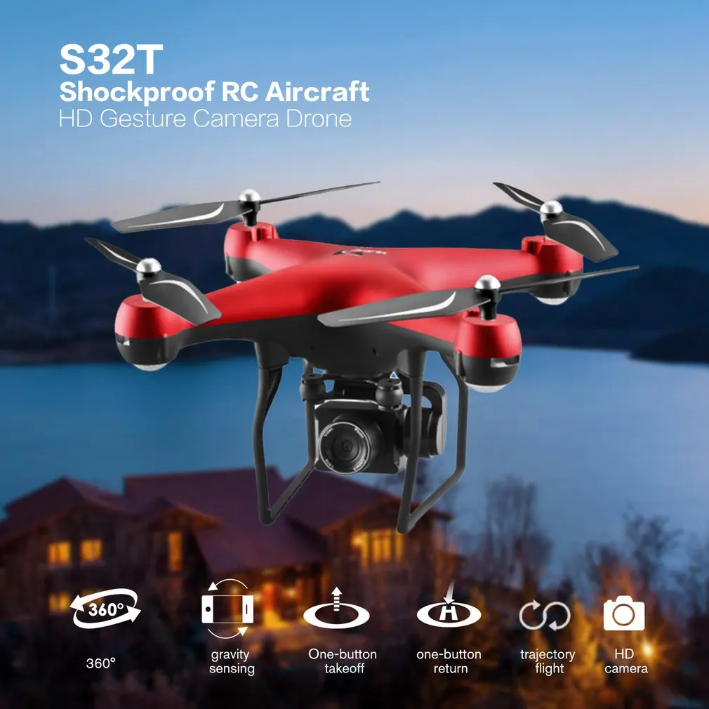 1. Этот Дрон S32T оснащен камерой PTZ высокой четкости и оснащен функцией удержания высоты, легко делать красивые фотографии, аэрофотосъемка высокой четкости.