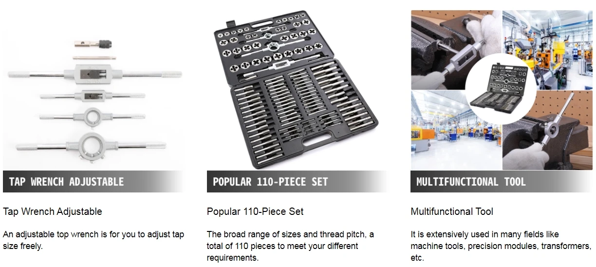 Наш прочный и надежный набор из 110 деталей включает в себя метрические грубые и тонкие размеры, сверхжесткие и высокоточные, и может предложить вам отличную производительность в таких приложениях, как станки, прецизионные модули, трансформаторы и т. Д.