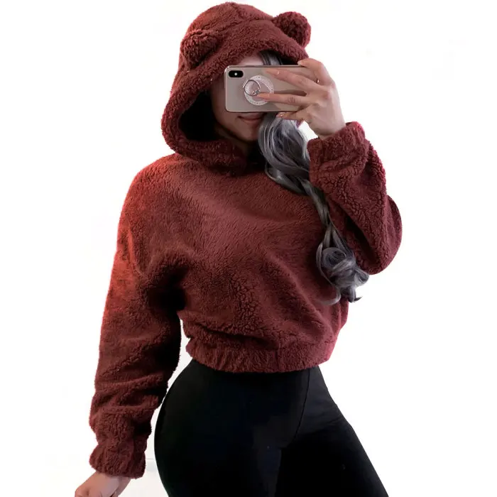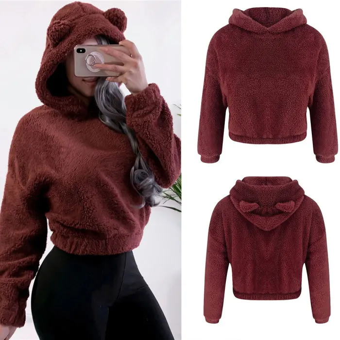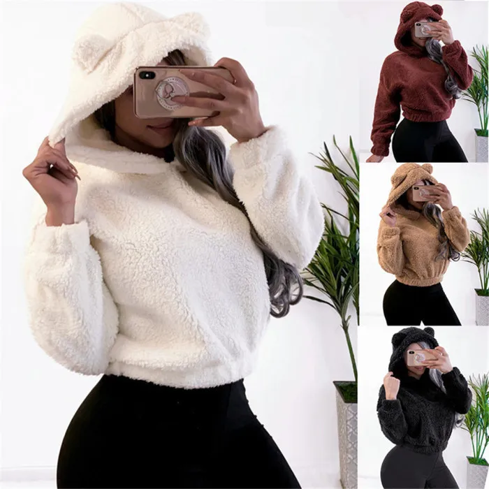 Модный женский плюшевый свитер с капюшоном, короткий мини-свитер, Женская толстовка с длинным рукавом, повседневные топы, женские толстовки