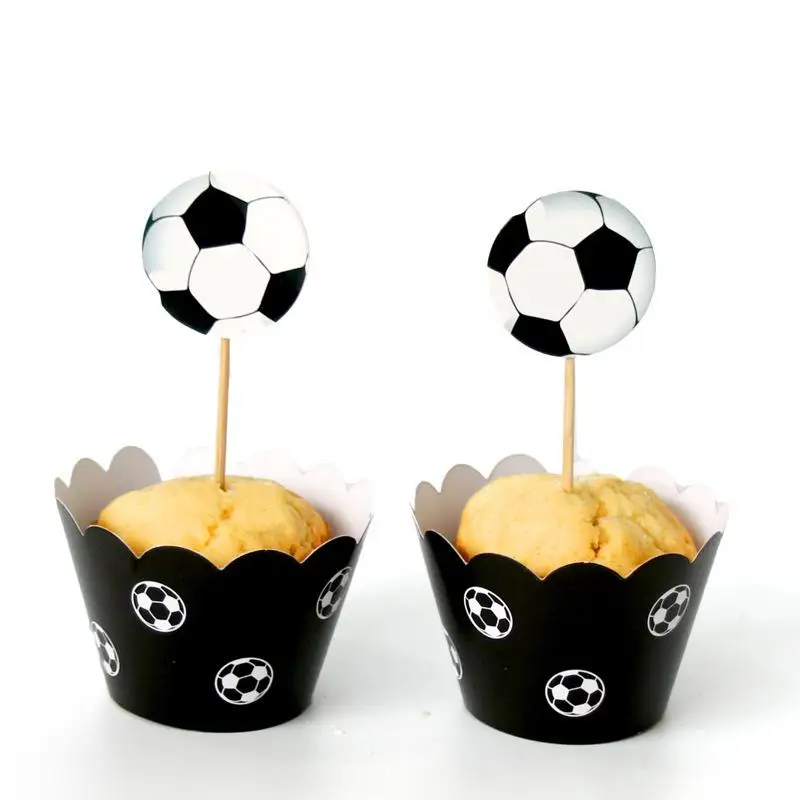 24 шт./партия, счастливая предродительная Вечеринка вечерние торт, кекс, мальчики, сувениры, футбольные топперы, сажи, мяч, тема, обертки, украшения на день рождения