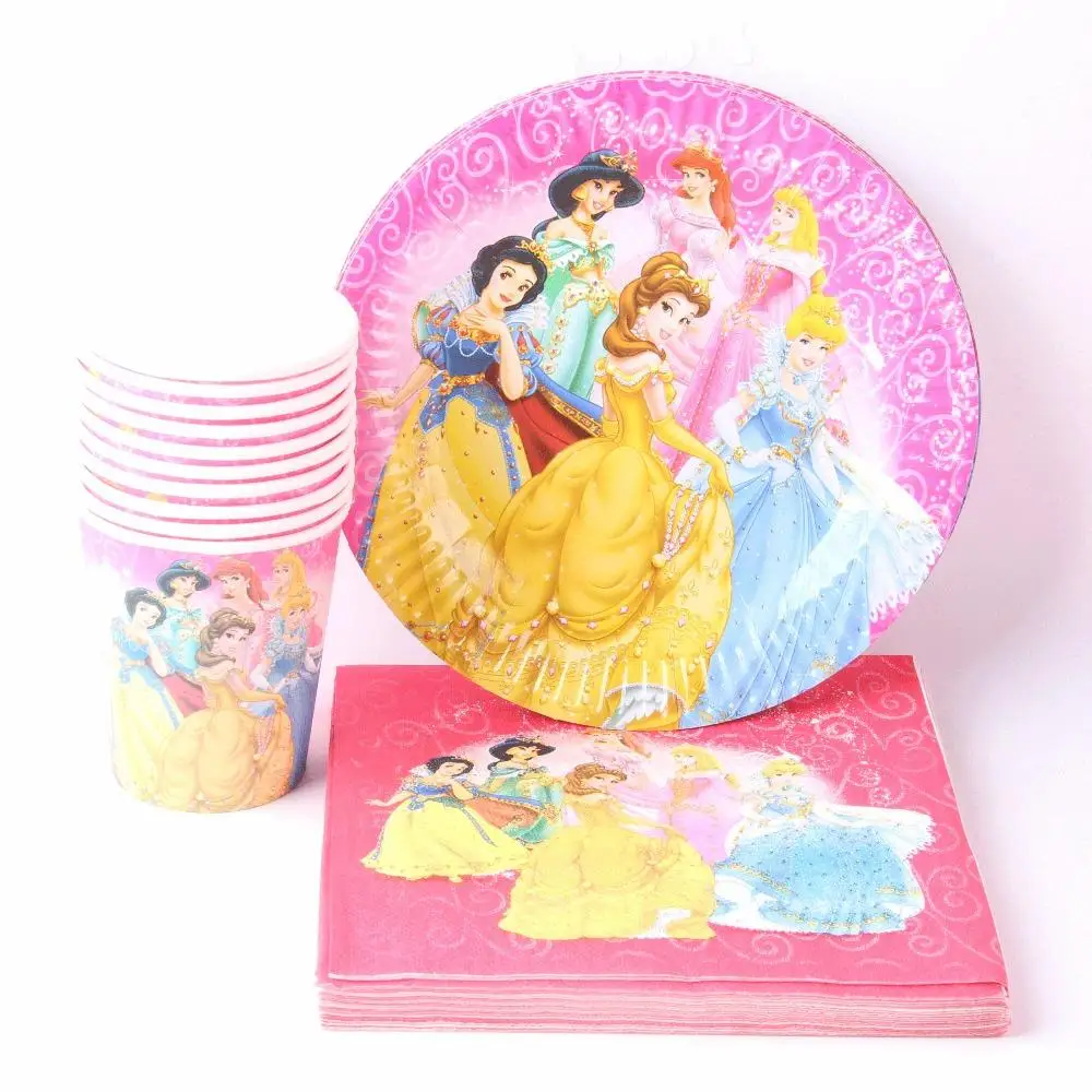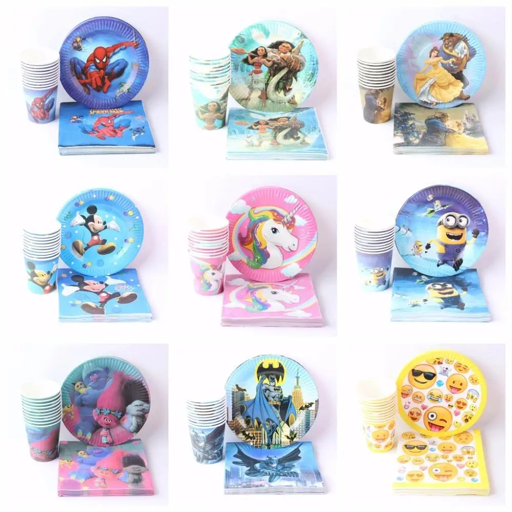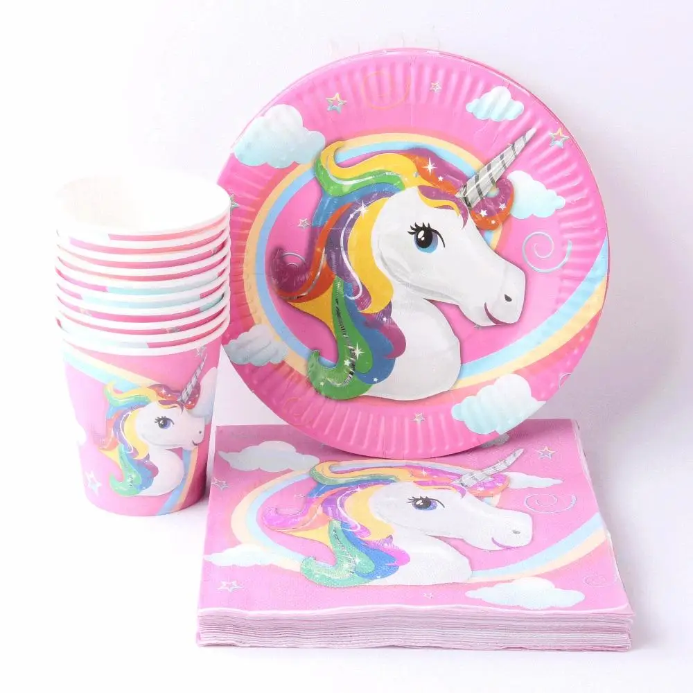 40 шт./лот набор Одноразовых Бумажных Столовых приборов с мультяшным единорогом тарелки + чашки + салфетки праздничные декоративные вечерние принадлежности для дня рождения и свадьбы