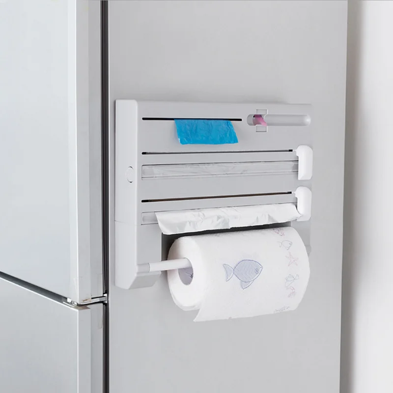 2. Функция: этот настенный держатель для бумажного полотенца отлично подходит для хранения бумажного полотенца, пластиковой обертки, алюминиевой фольги, мусорного мешка и хранения некоторых кухонных аксессуаров.