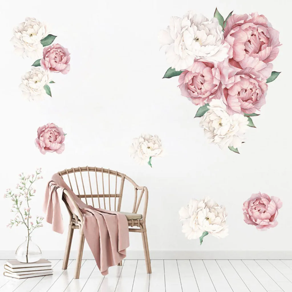 Пион розы цветы стикер на стену искусство Детские наклейки для детской домашнего декора подарок