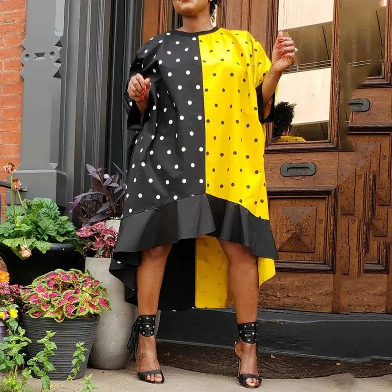 Большого размера плюс 5XL, свободный, контрастный цвет, в горошек, длина до пола, макси платье, высокая талия, рукав-фонарик, элегантное, ретро, Африканское