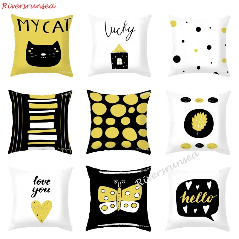 Геометрическая подушка в скандинавском стиле желтого и черного цвета