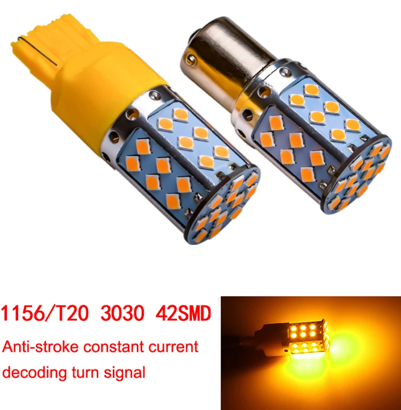 -Цоколь лампы: 1156 BA15S/BAU15S T20 7440 -Светодиодный комплект микросхем: 3030-35SMD -Угол луча: 360 градусов -Выход освещения: около 2800 люмен -Рабочее напряжение: 12 В постоянного тока -Светодиодный Цвет: очень желтый (янтарный)/холодный белый -Срок службы: 50000 рабочих часов -Стандарты и сертификаты: соответствует стандартам CE / ROHS