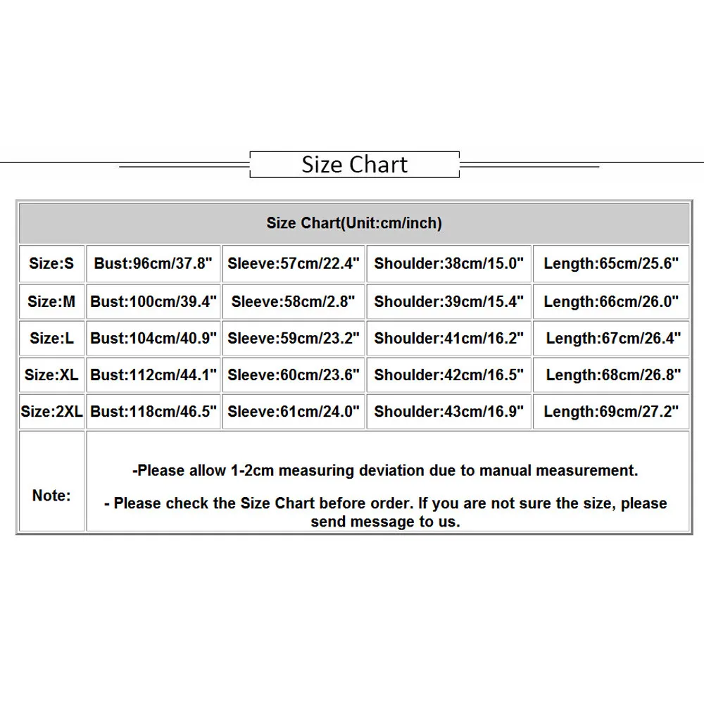 -Пожалуйста, проверьтеРазмеры диаграммы Прежде чем делать заказ. Если вы не уверены в размере, пожалуйста, отправьте Напишите нам сообщение.
