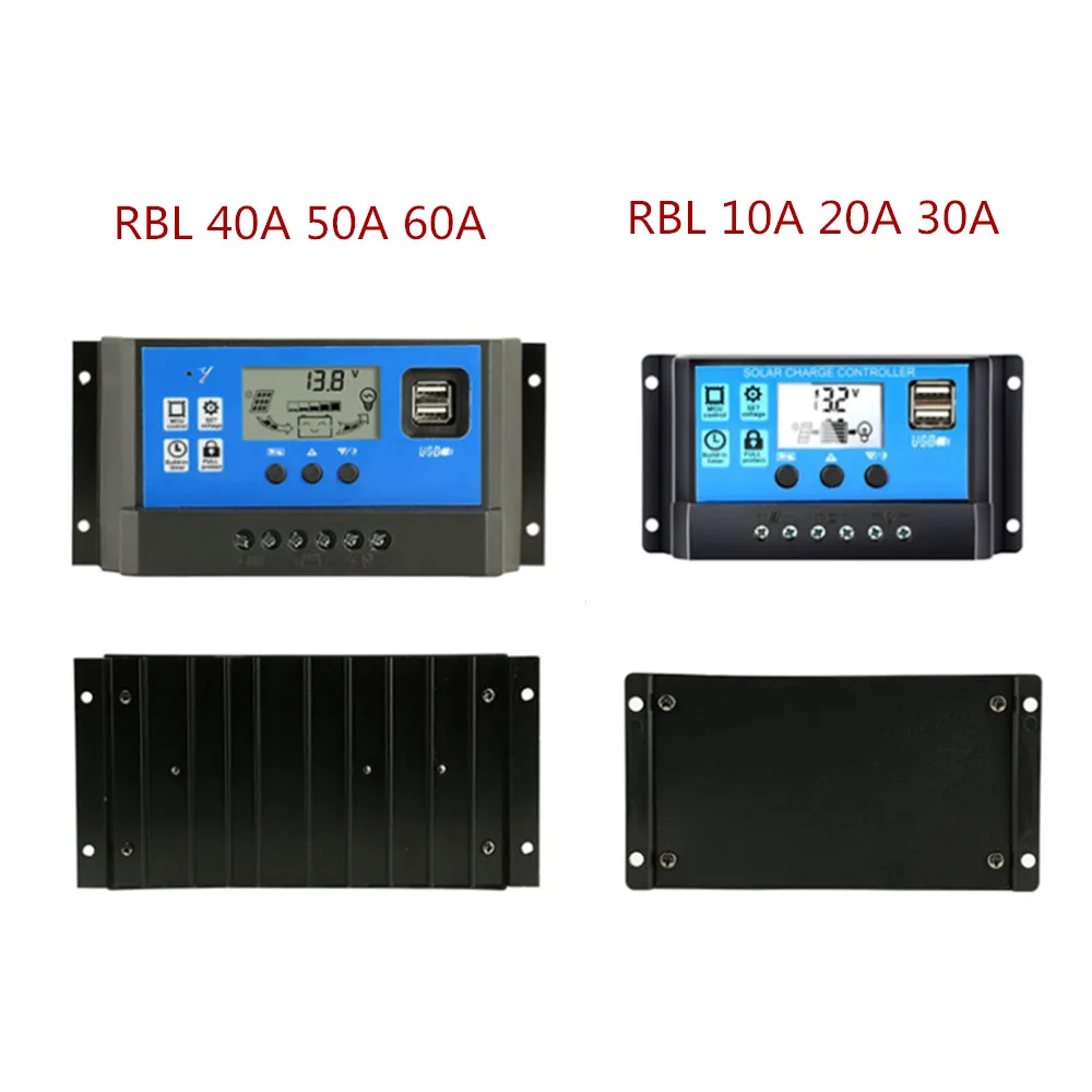 PWM регулятором солнечного Зарядное устройство контроллера 60A 50A 40A 30A 20A 10A 12V 24V Батарея Зарядное устройство ЖК-дисплей Dual USB Панели солнечные регулятор Max с алюминиевой крышкой, 50В PV Вход