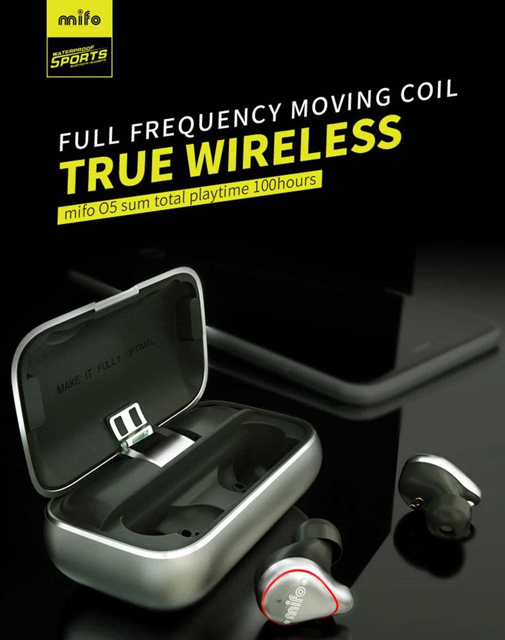 Mifo O5 Bluetooth 5,0 настоящие беспроводные наушники, сбалансированные Bluetooth наушники, спортивные стерео звуковые наушники с зарядным устройством для телефона