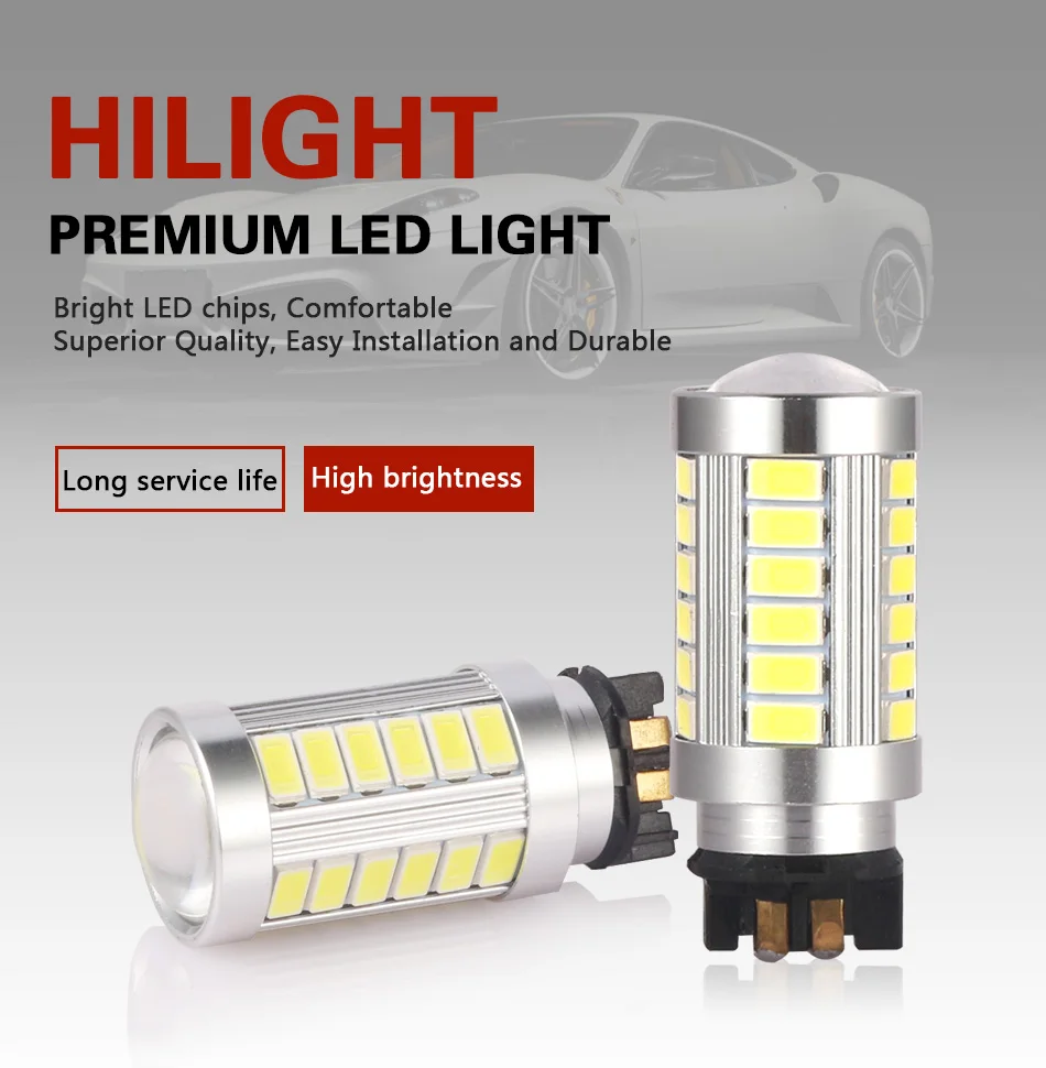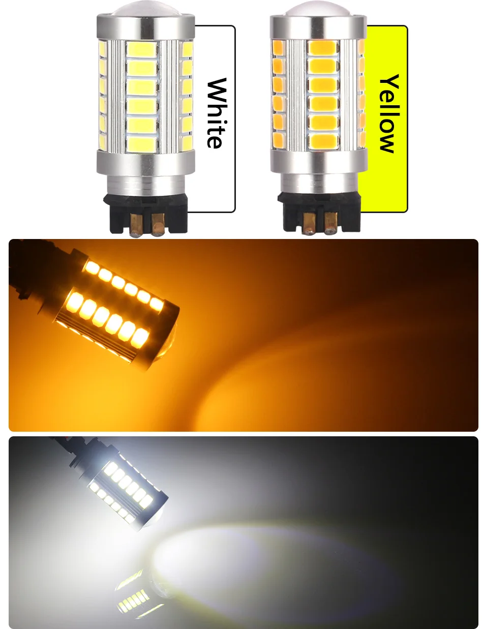 Название продукта: PWY24W PW24W светодиодный светильник (12-24 В постоянного тока). Количество СВЕТОДИОДНЫЙ: 33 шт. Светодиодный Параметры: 33 штуки 0,5 W приведенный в действие 5730 светодиодный чипы Мощность светодиодов: 0,5 W Цвет: белый (6000k)/янтарный Фактический Люмен: 800 люмен Рабочее напряжение: 12-24 В постоянного тока Рабочая мощность: about12Vx0.55A = 6,6 Вт Рабочая температура:-40 °C- 105 °C Угол луча: 360 ° Схема: оригинальные компоненты из Америки, широкий диапазон коллизии, Интеллектуальный постоянный ток IC, защита от помех схема применяется к большинству моделей автомобилей Светодиодный светильник нового поколения с карбидом кремния 5730