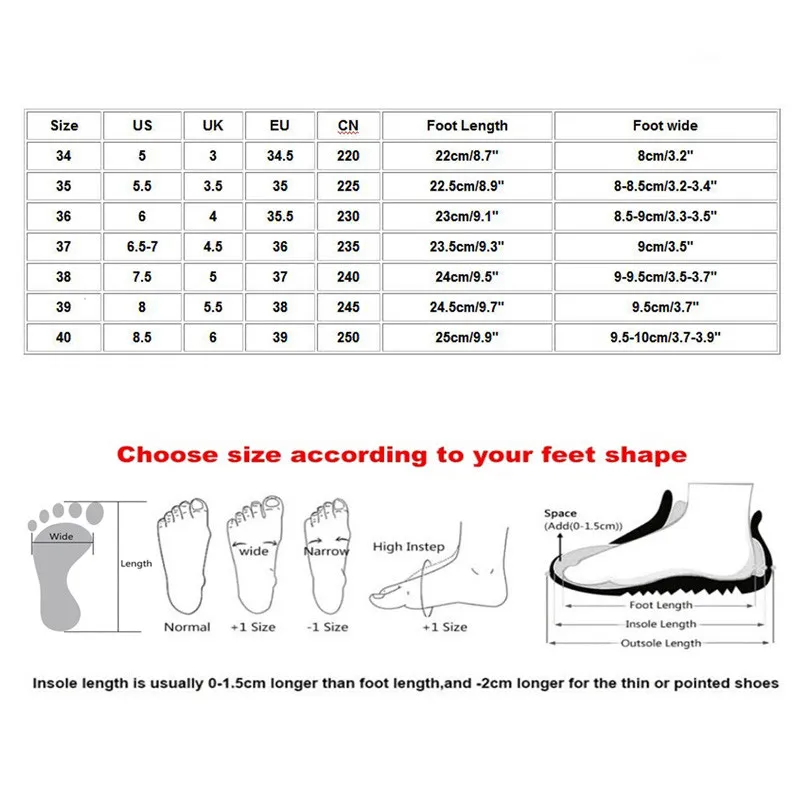 Полезные советы:Различные стили обуви, пожалуйста, выберите размер в соответствии с типом вашей стопы