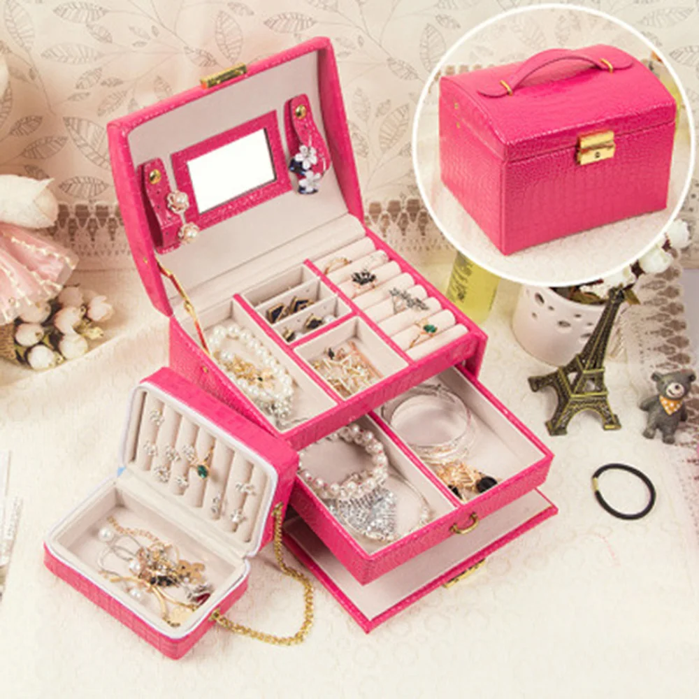 Ящик для хранения ювелирных изделий, органайзер из искусственной кожи, съемный ящик на молнии, косметический аксессуар для волос, кольца, серьги, ожерелья, драгоценный камень, сундук, дорожная упаковка для переноски