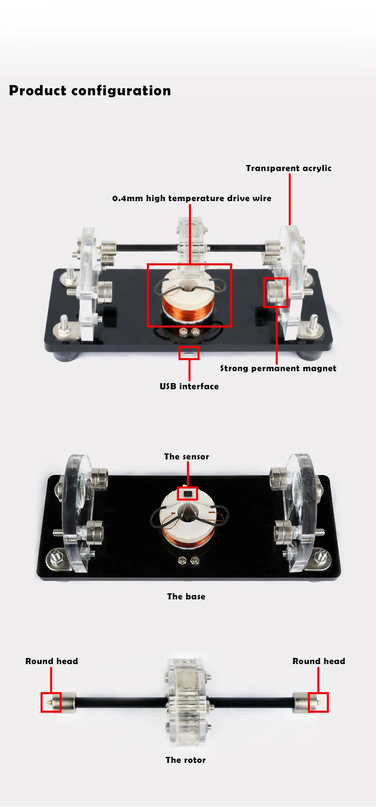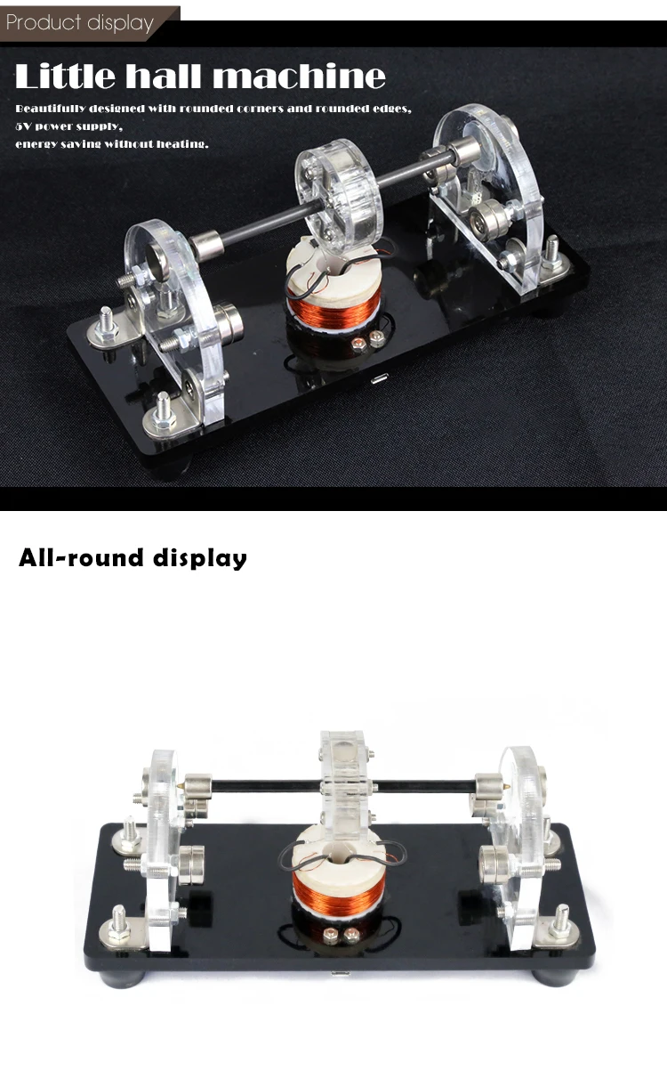 Информация о продукте Этот продукт является улучшенной моделью старого Холла в нашем магазине, которая более красива и красива. В то же время, он использует 5V источник питания, который является более стабильным и не генерирует тепло в течение длительного времени. Трехточечная Магнитная подвеска, оба конца всасывающего магнита, почти незаметны невооруженным глазом. И добавленный стеклянный лист, не будет носить акрил, подходит для длительной работы. Параметры продукта Вес: 494 г Размер: 200*75*90 мм Напряжение: 5 В Оборотов: 3000-6000р/мин Мощность: 1-3 Вт Осевой Размер: 130*16*40 мм Направление для использования Поместите ротор на основание, подключите его и используйте его. На что следует обратить внимание 1. Пожалуйста, обращайтесь с осторожностью и не разбирайте без разрешения. 2. Пожалуйста, поместите его на плоскую и сбалансированную таблицу. 3. Не используйте магниты или железо возле двигателя во время эксплуатации. 4. Не прикасайтесь к Ротору во время высокоскоростной работы. 5. Если магнит свободный, затяните винт и включите питание.