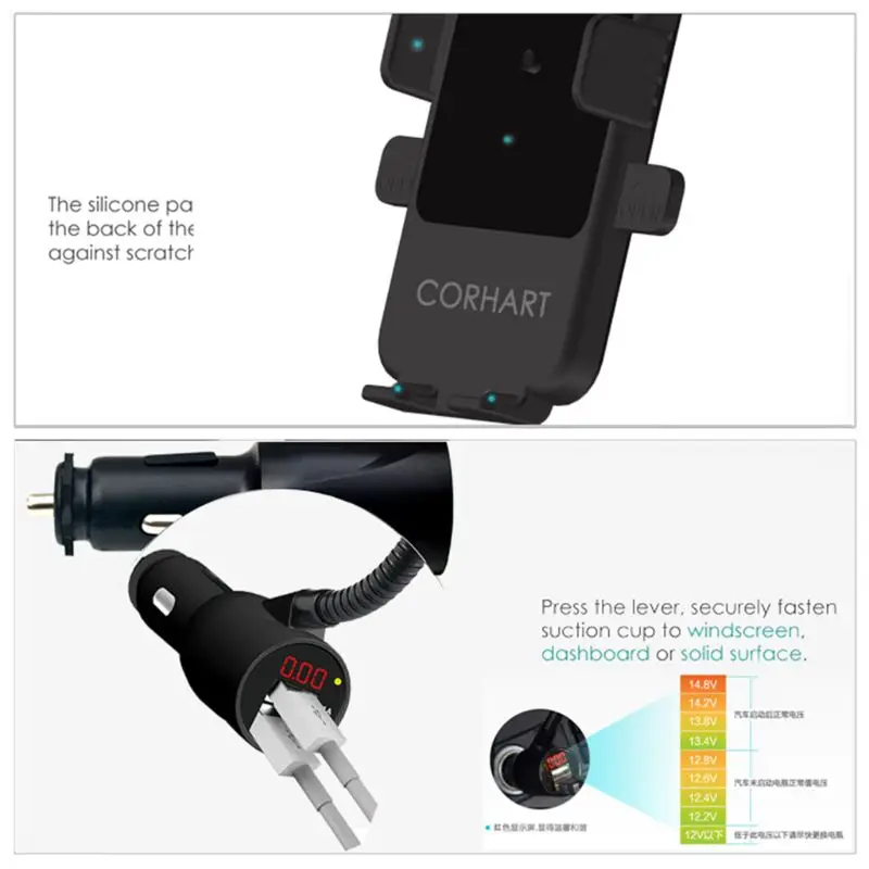 Intelligent Cigarette Lighter Dual USB Smart Fast Charger Car Wireless Charging Universal Navigation Phone Bracket Holder Stand for iPhone Samsung Huawei Xiaomi Cellphones