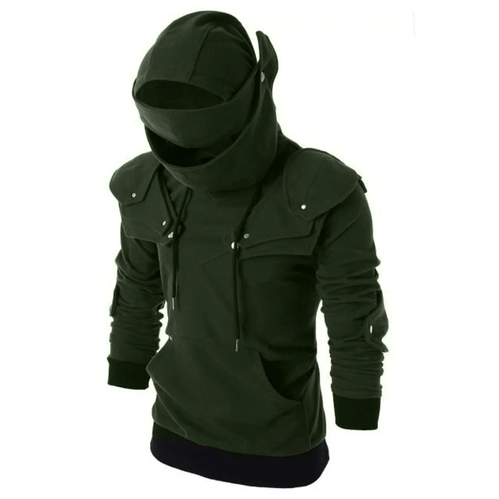 Мужской пуловер в стиле ретро с маской и пуговицами на рукавах, толстовка с капюшоном, топы, блузка