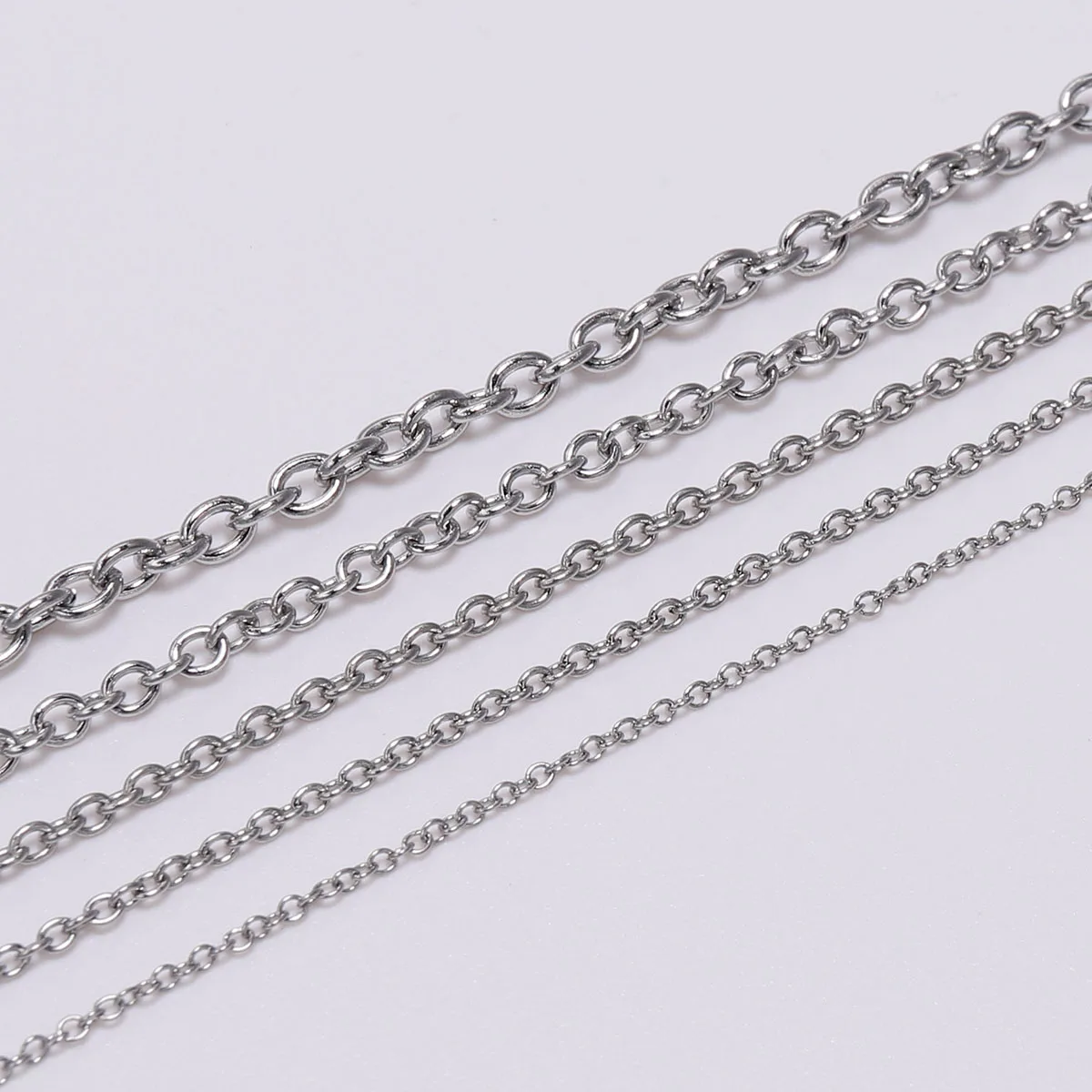 5 м/лот, 1,2, 1,6, 2 мм, цепочка из нержавеющей стали, цепочка для ожерелья оптом, фурнитура для изготовления ювелирных изделий, аксессуары 2) Материал: нержавеющая сталь 3) ширина цепи: 1,2 мм/1,6 мм/2,0 мм/2,5 мм/3,0 мм 4) Вес: 11 г/18 г/27 г/25 г/65 г 5) Цвет: как на картинке. 6) Упаковка: полипропиленовый пакет Подходит: ручная работа/DIY цепь для изготовления ювелирных изделий