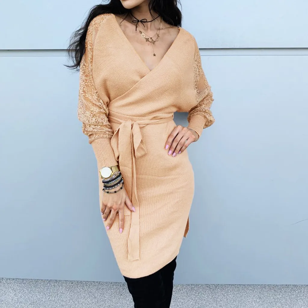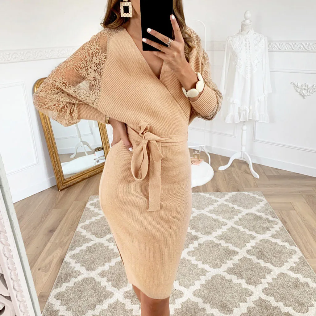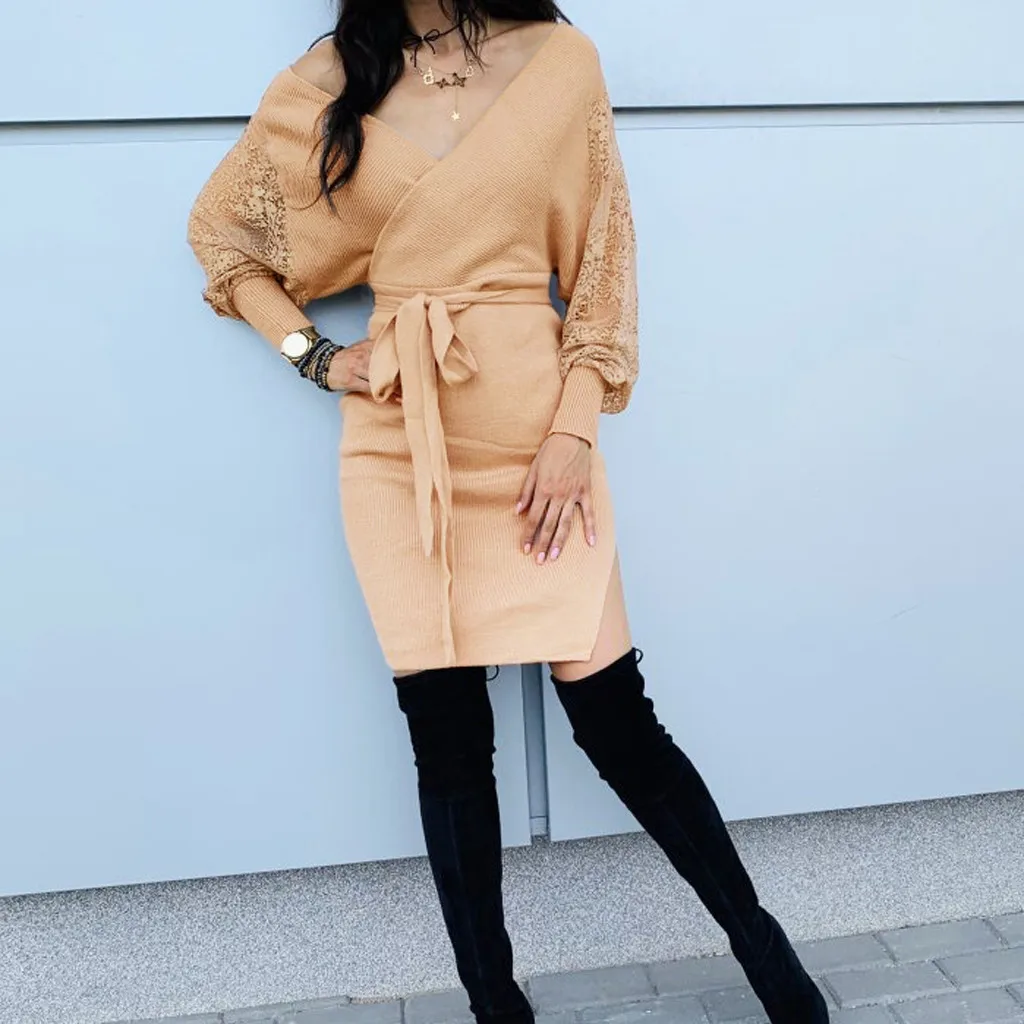Женское сексуальное кружевное платье с длинным рукавом, женское повседневное мини-платье