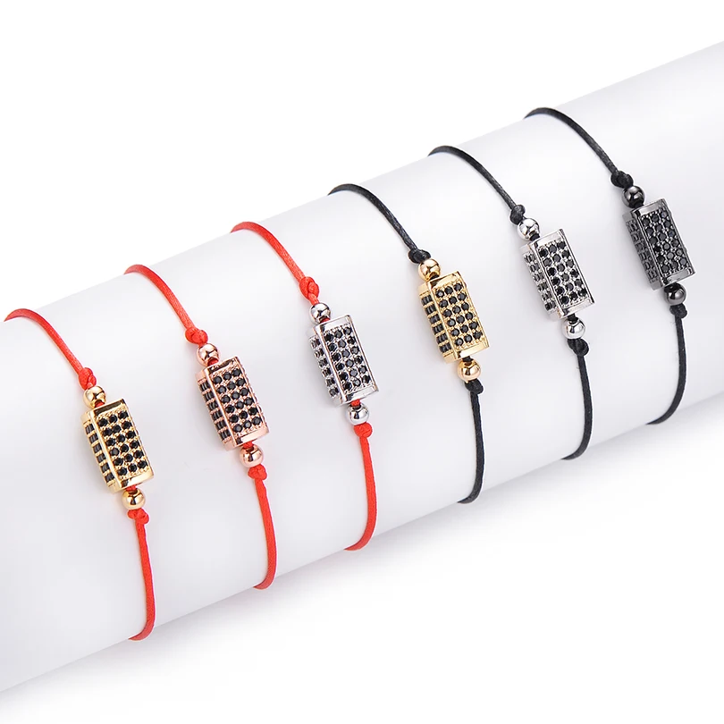 Имя:Прямоугольные бусины Neovivi, браслет с микро-ПАВЕ, черные циркониевые медные бусины-спейсеры, веревочные браслеты, плетеные ювелирные изделия, подарок «сделай сам»