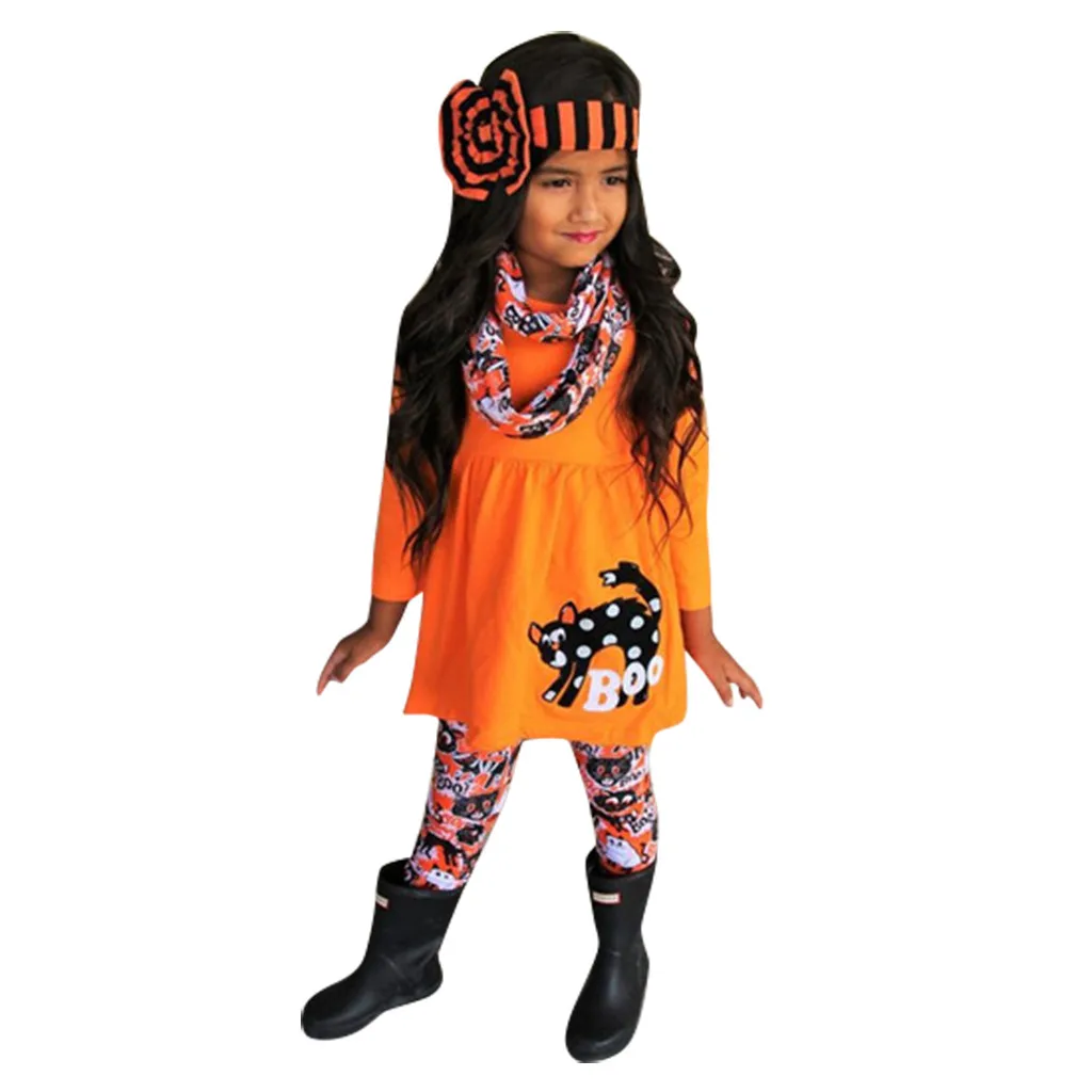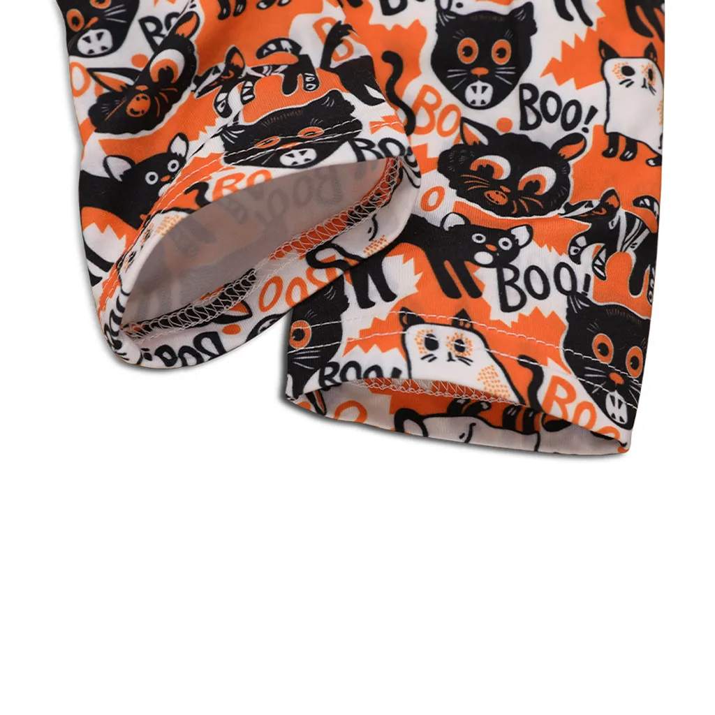 Детская футболка с тыквой для маленьких девочек штаны с рисунком кота комплект костюмов на Хэллоуин