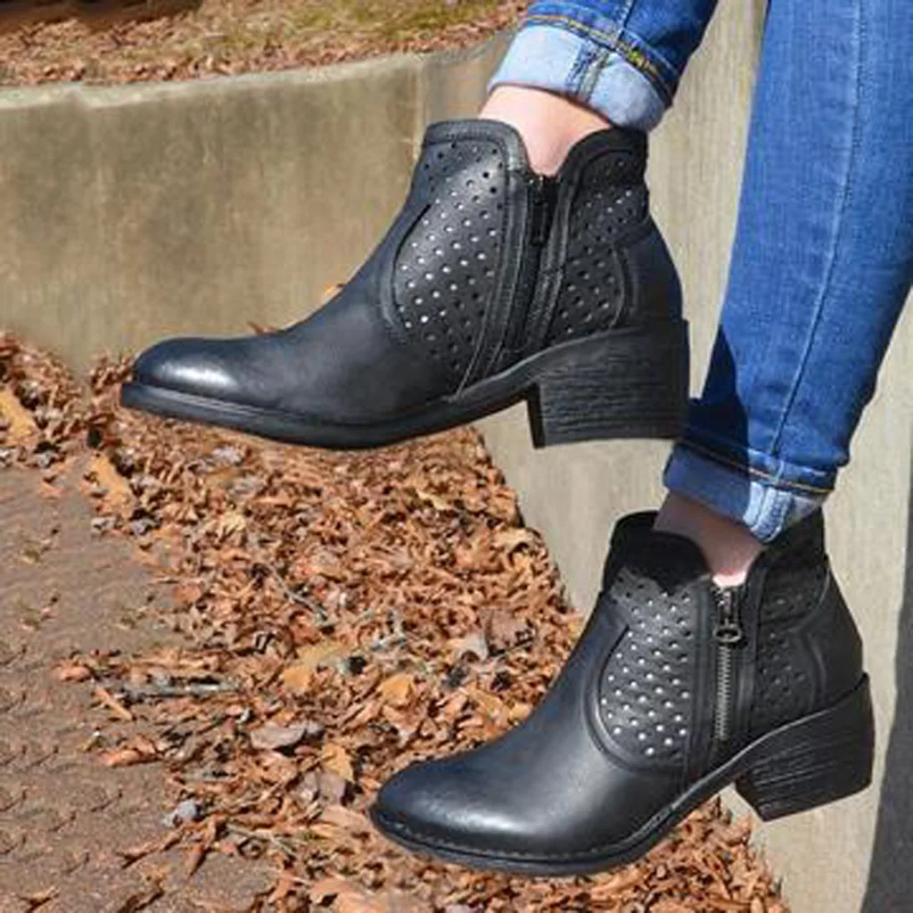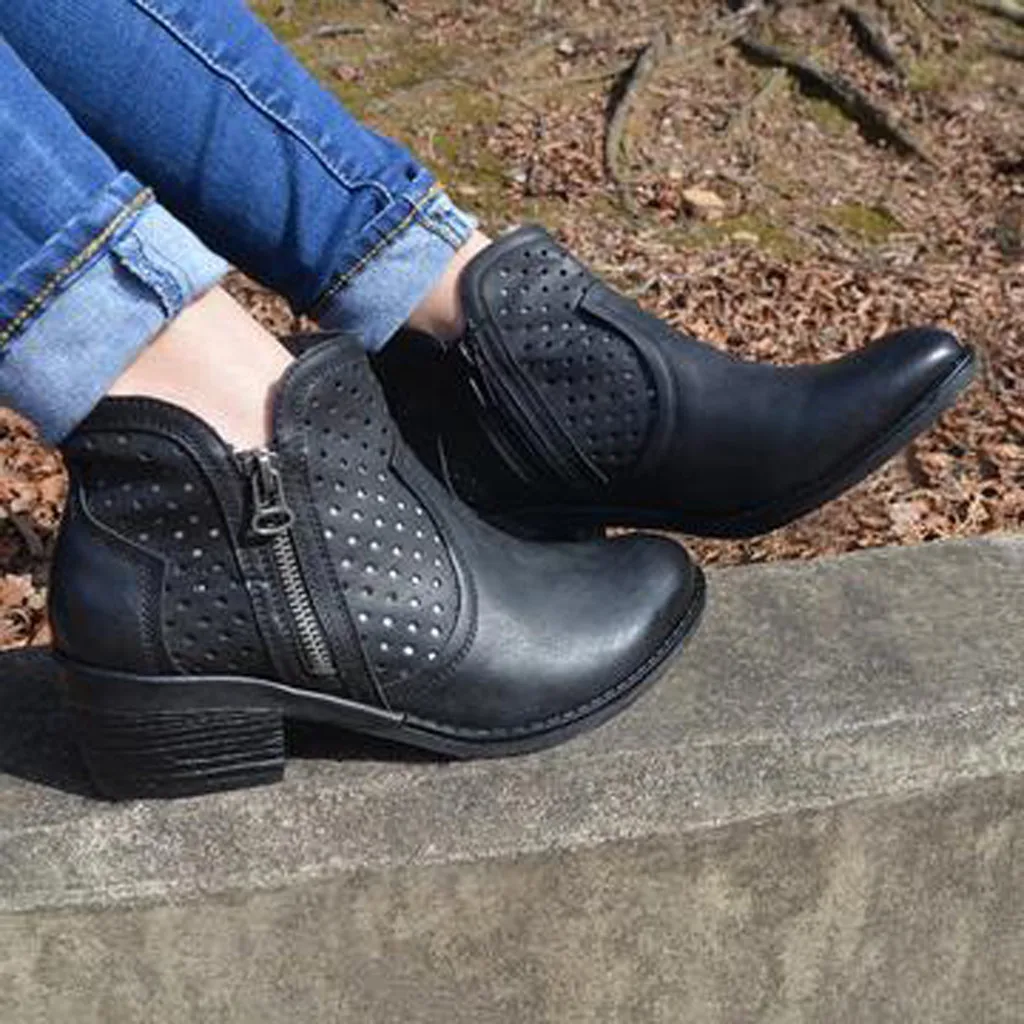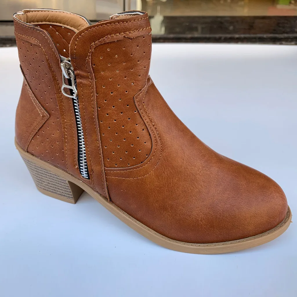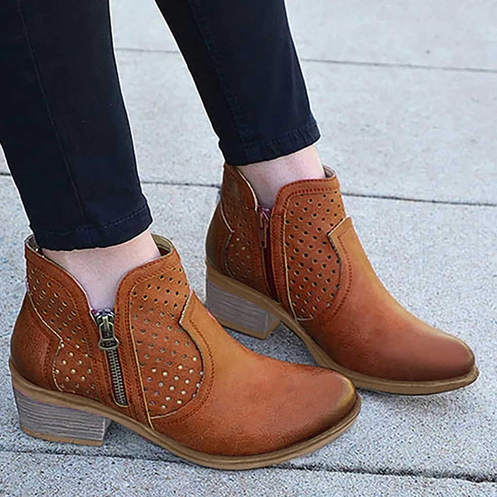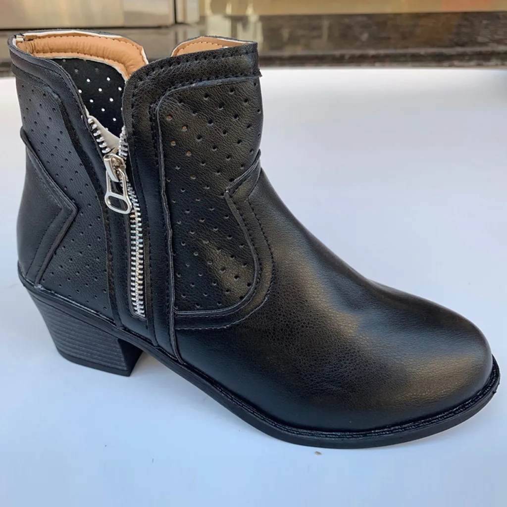 Женские римские однотонные Большие размеры на молнии с вырезами Ботинки на среднем массивном каблуке