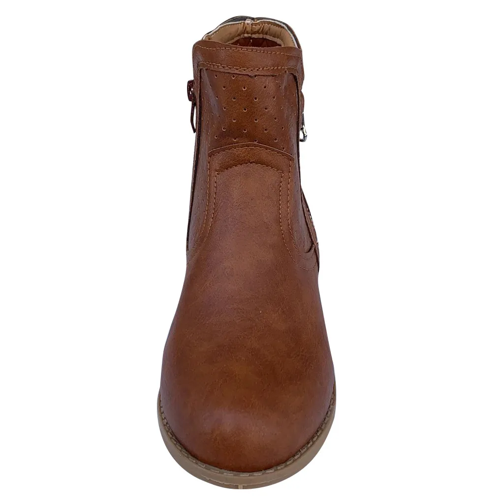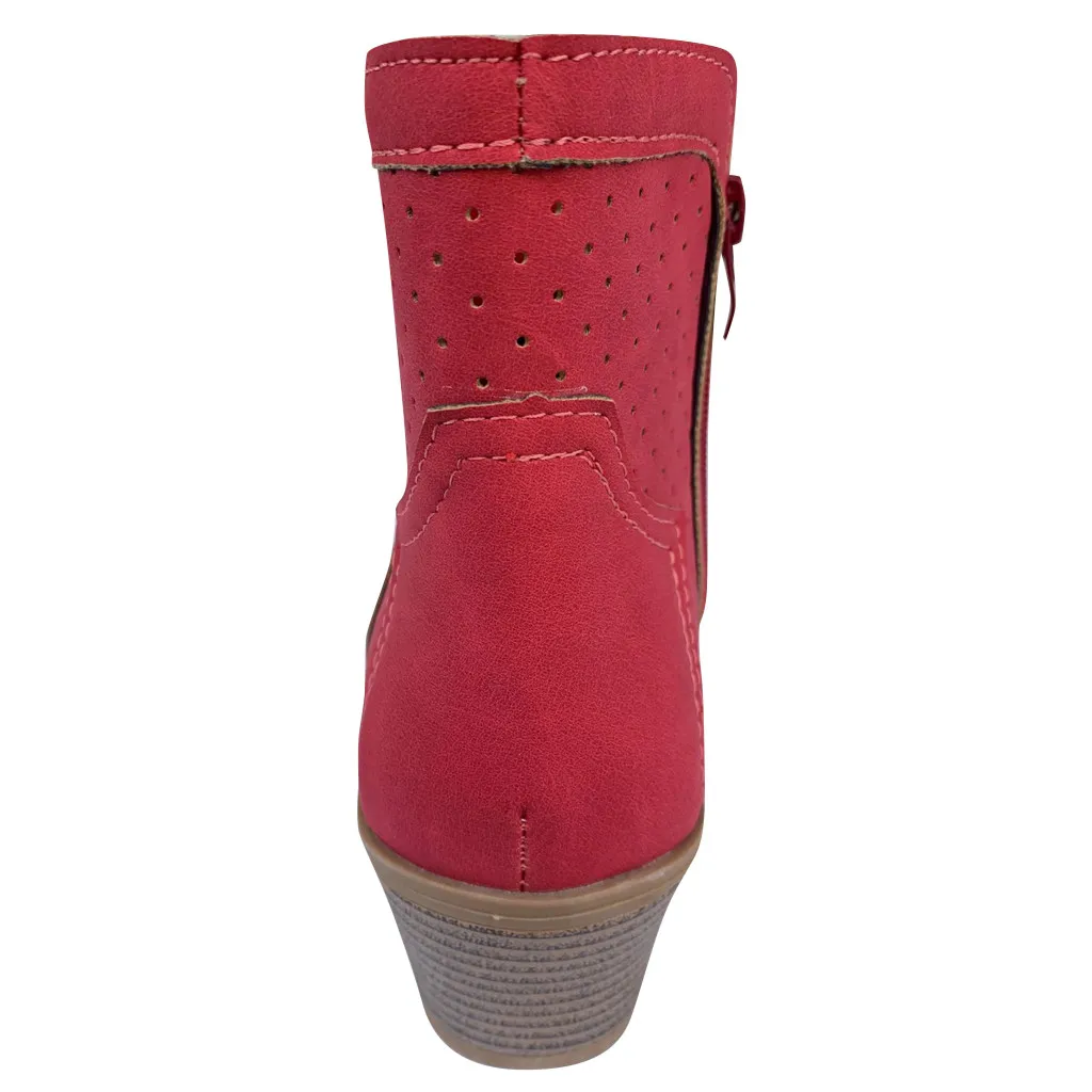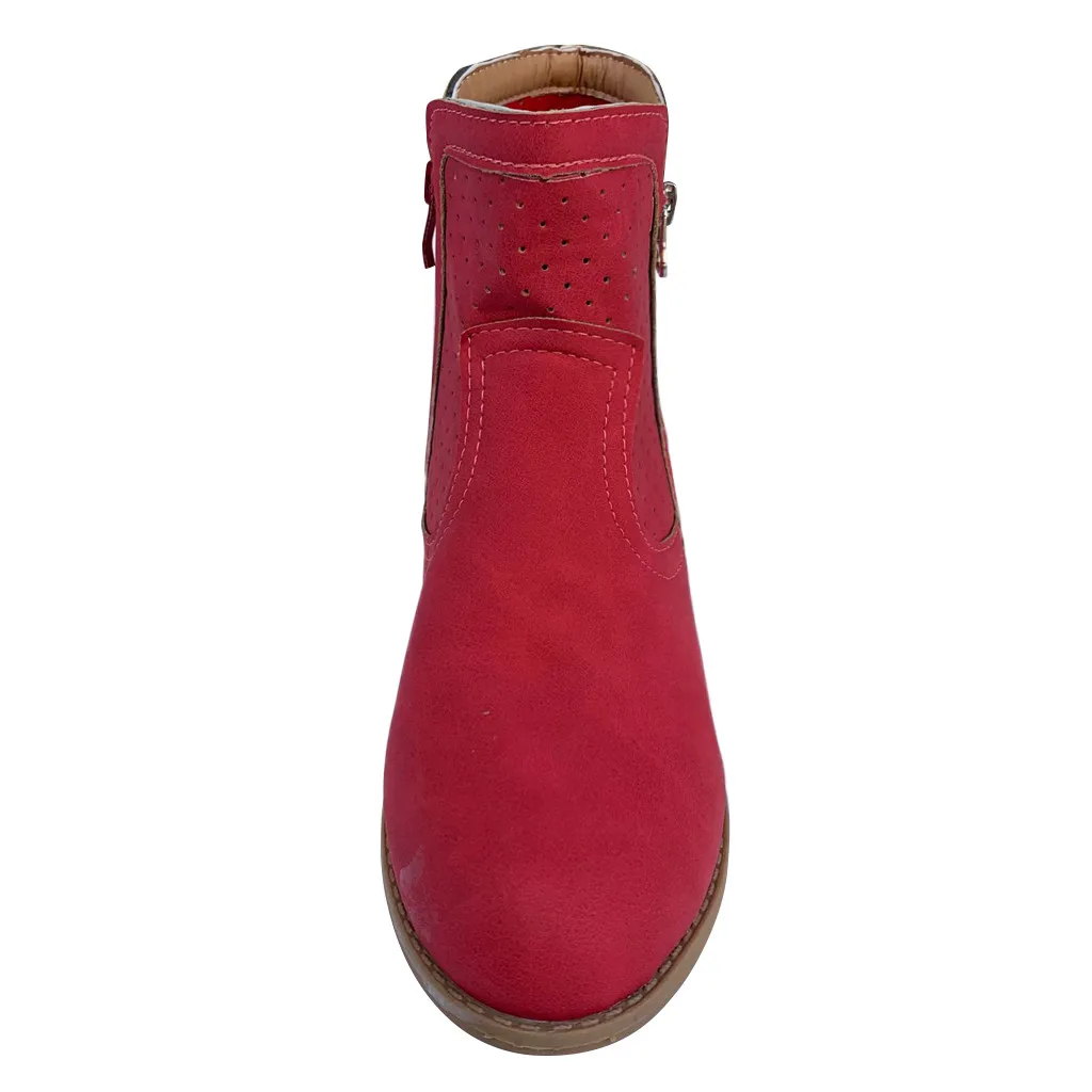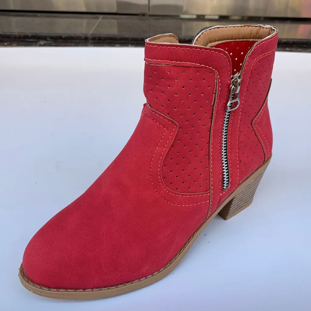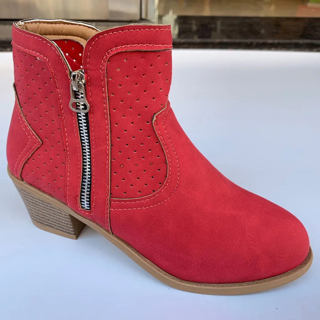 Женские римские однотонные Большие размеры на молнии с вырезами Ботинки на среднем массивном каблуке