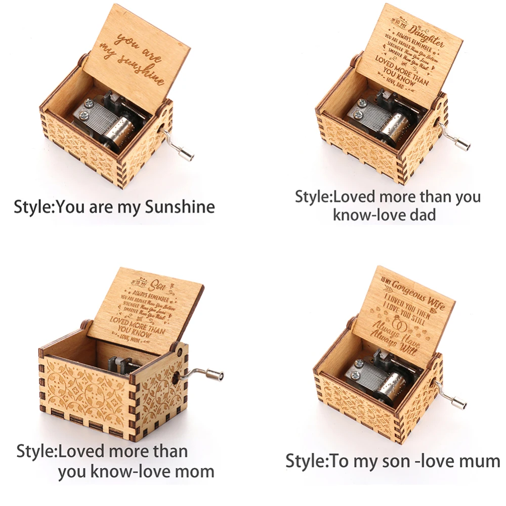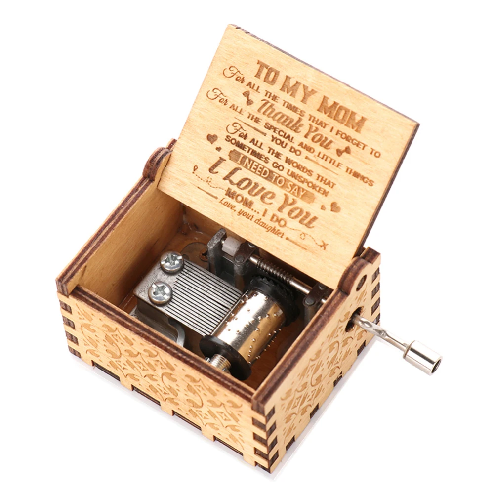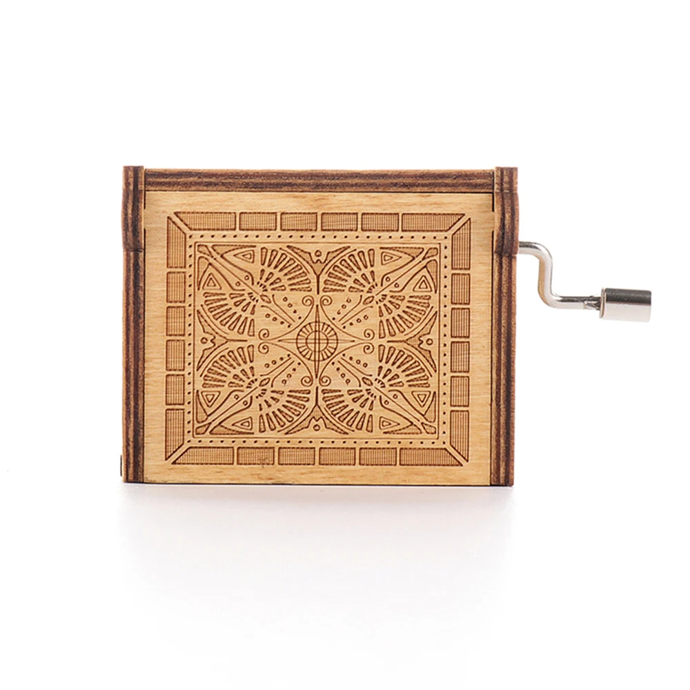 -Резная деревянная музыкальная шкатулка, без батареи, продолжайте поворачивать ручку, чтобы играть знаменитую мелодию.