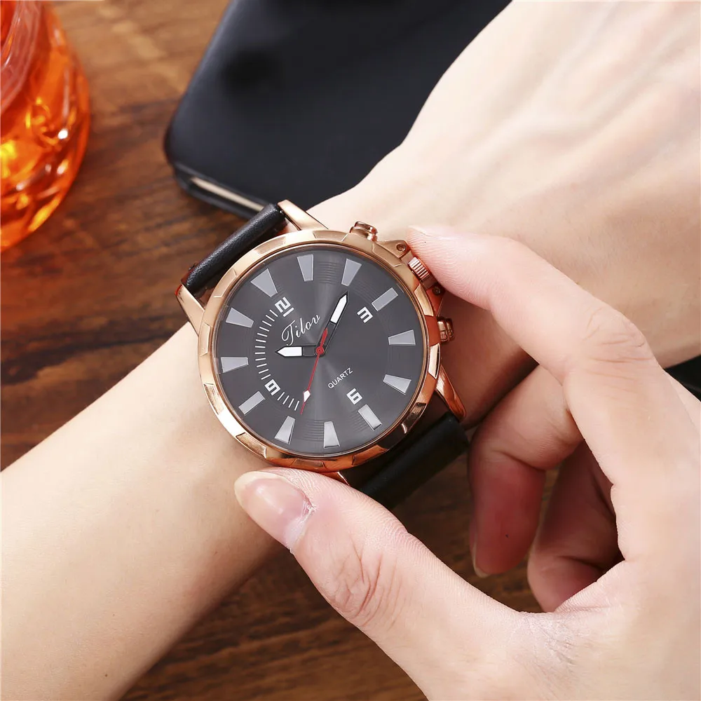 JILOU модные креативные большой циферблат двойной шкалой ремень мужские кварцевые часы подарок