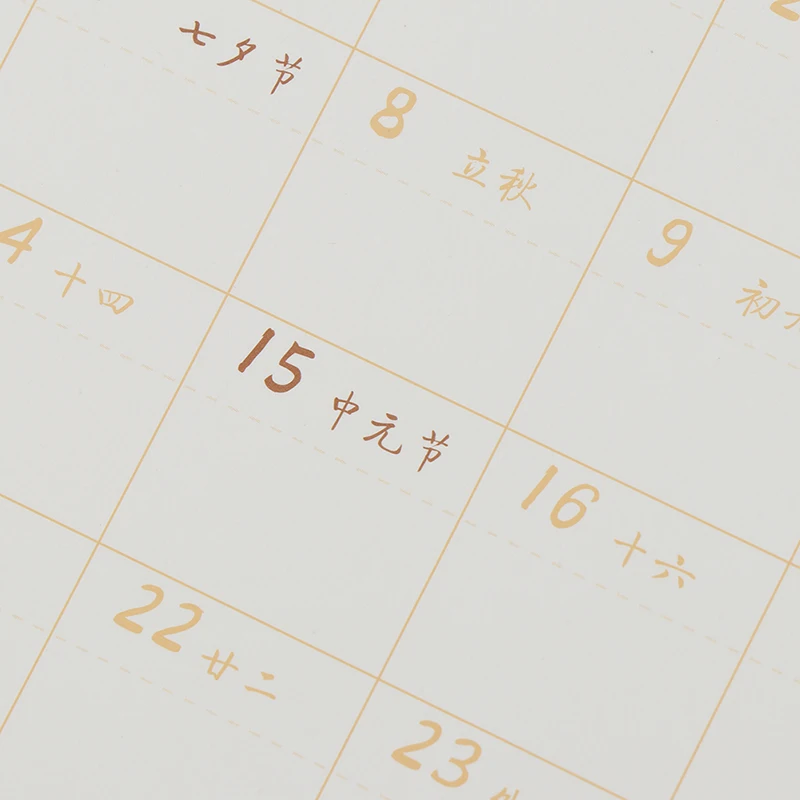 4. Процесс бронзирования: шрифт настольного календаря на обложке имеет процесс бронзирования, который прост и деликатен.