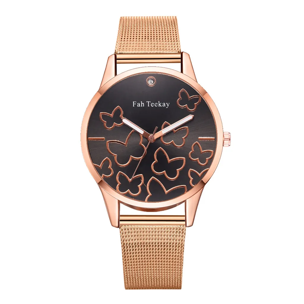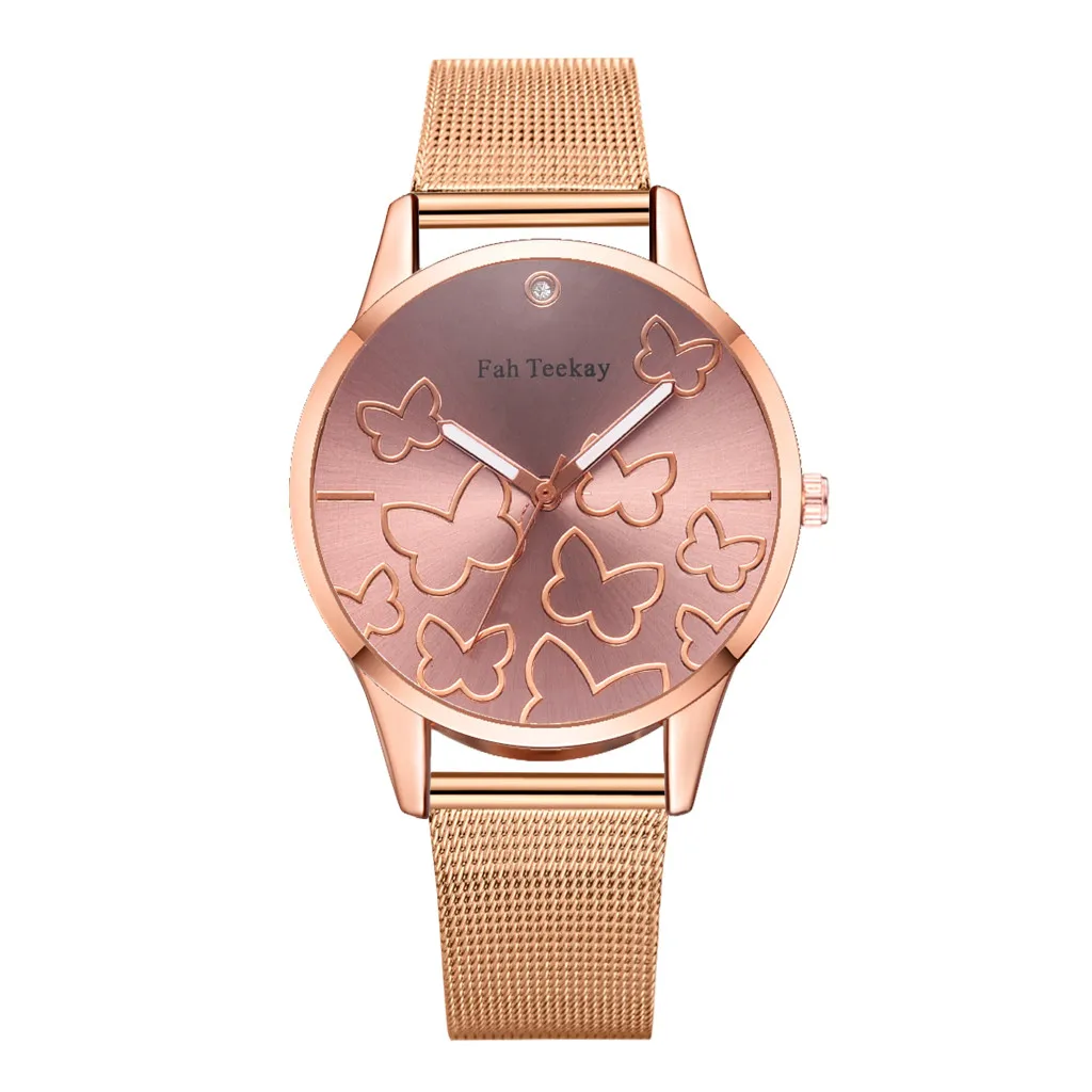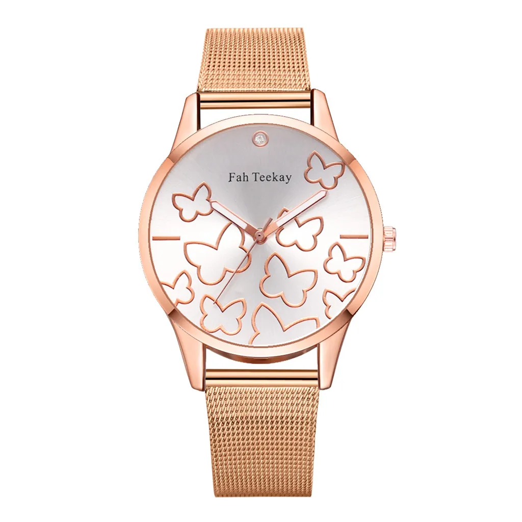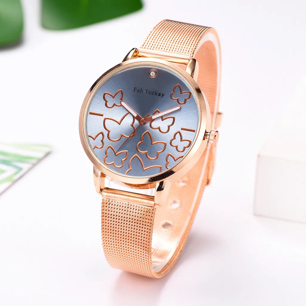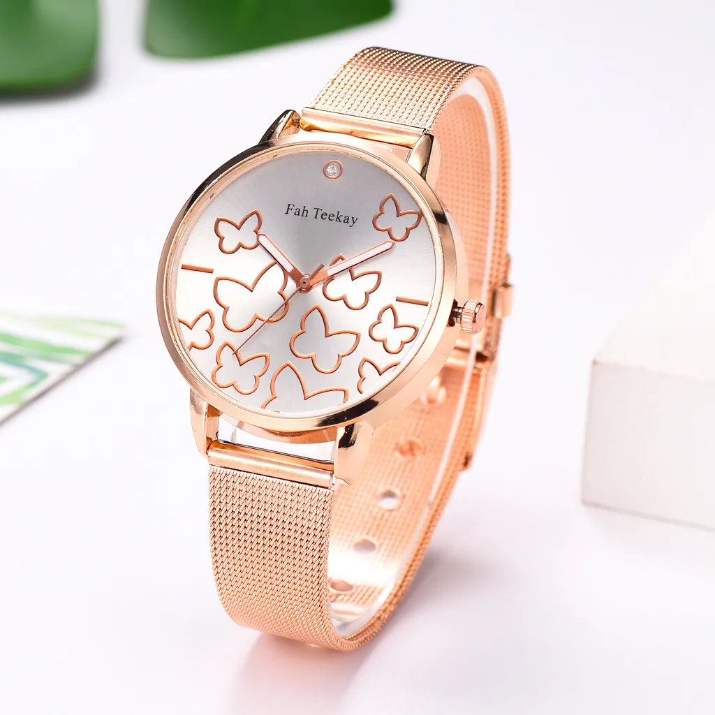 Модный Бабочка Летающий танцевальный Циферблат без чешуи Женский, сетчатый с кварцевыми часами