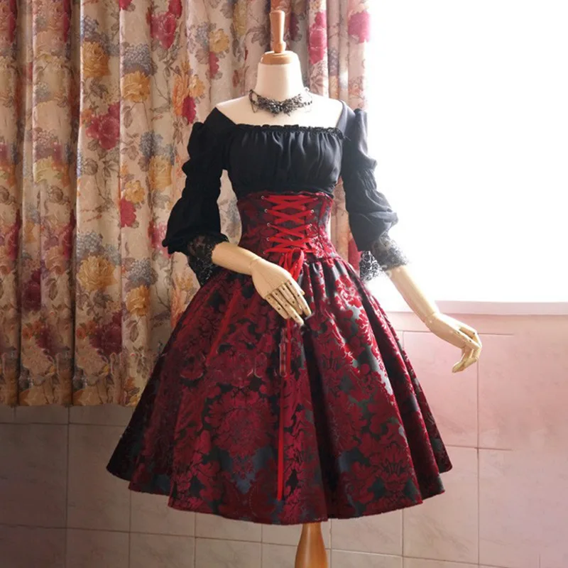 Характеристика:-Ткань из полиэстера.-5 цветов на выбор-Винтажные вечерние платья с короткими рукавами на Хэллоуин.