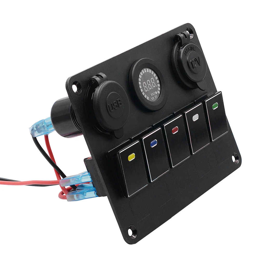 5-Цвет переключатель Панель анти-огнезащитных Быстрая зарядка Цвет вольтметр с экраном держатель лампы Питание для мобильных телефонов