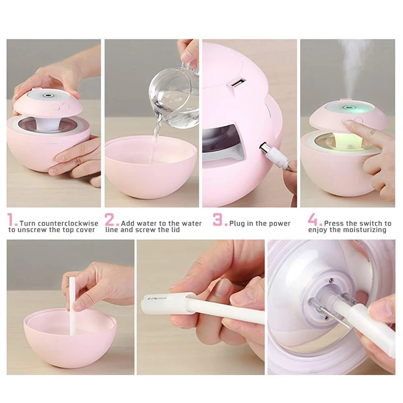 1. Три вида световых режимов-Режим постоянного освещения, режим дыхания, режим скачки, чтобы создать красивую и мечтательную сцену для вас ночью. 2. 500 мл большой емкости резервуара для воды, не нужно часто добавлять воду, и долгосрочное увлажнение, позволяет вам комфортно спать всю ночь. 3. Два режима распыления: 10 часов стойкий спрей, 20 прерывистых брызг. 4. Нано-спрей, частицы воды проникают в кожу непосредственно к базальному слою, увлажняя и защищающая водоотталкивающую кожу. 5. Увлажнитель имеет встроенный водонепроницаемый детекторный зонд, который автоматически отключается при отсутствии воды. Попрощайтесь с традиционным увлажнителем, с выходом USB, можно использовать с небольшим вентилятором, светодиодный ночник. Маленькие зеркала могут пригодиться при необходимости, компактные и красивые. Режим кнопки распыления: 1. короткое нажатие первого, продолжите время распыления в течение 10 часов; короткое нажатие второго, прерывистый спрей (спрей три секунды в течение трех секунд) в течение 20 часов; Короткое нажатие на третий, закройте спрей. 2. Нажмите и удерживайте в течение 1,5 секунд, чтобы включить большой выход порта U; нажмите и удерживайте снова в течение 1,5 секунд, чтобы выключить. Режим кнопки освещения: 1. Короткое нажатие, свет проектора включен, и короткое нажатие снова, чтобы закрыть (лошадь, постоянный свет, дыхательный свет в последовательном порядке). 2. Нажмите и удерживайте в течение 1,5 секунд, чтобы включить маленький ночник. Если вам нужно зафиксировать цвет, пожалуйста, нажмите и удерживайте в течение 1,5 секунд. Когда свет мигает, цвет завершен. Нажмите и удерживайте снова в течение 1,5 секунд, чтобы выключить режим ночного освещения.