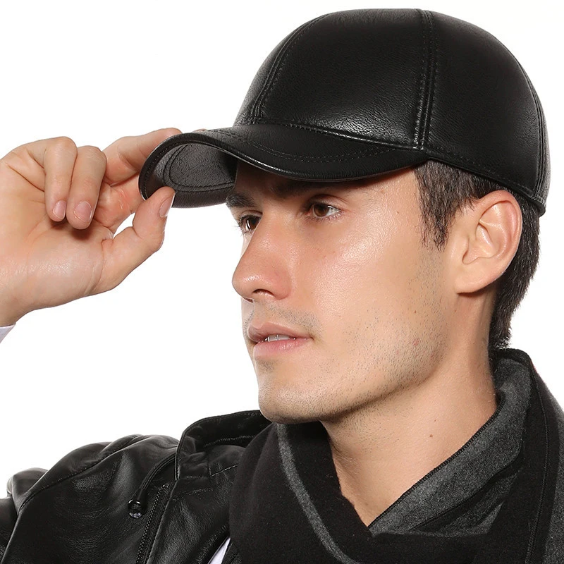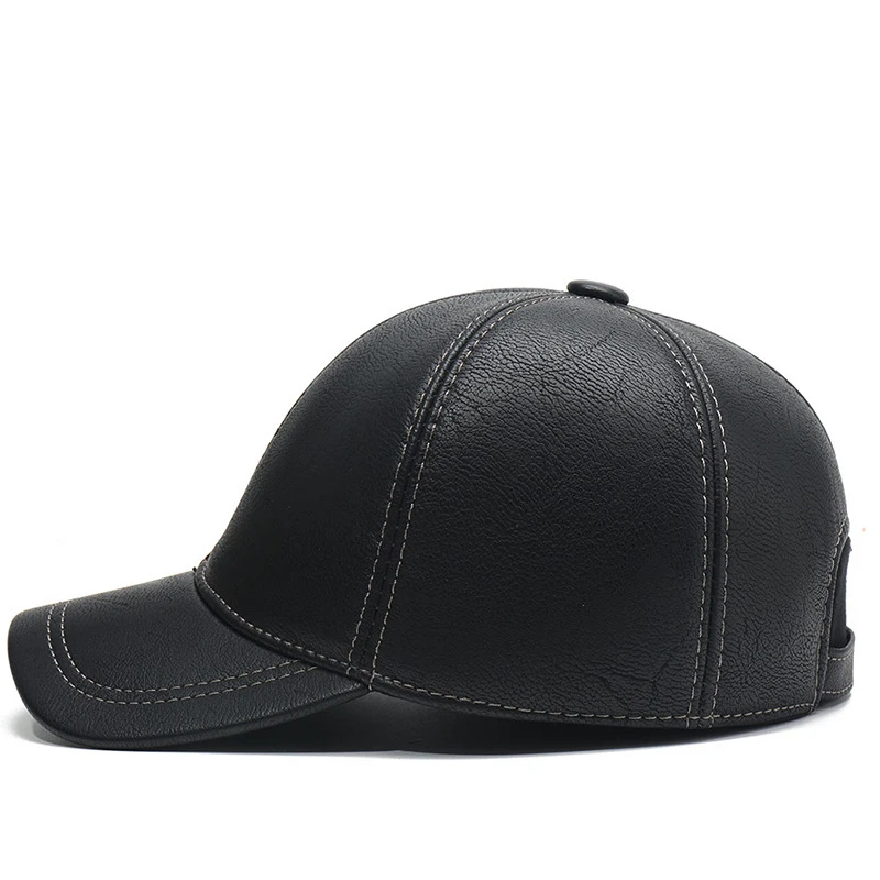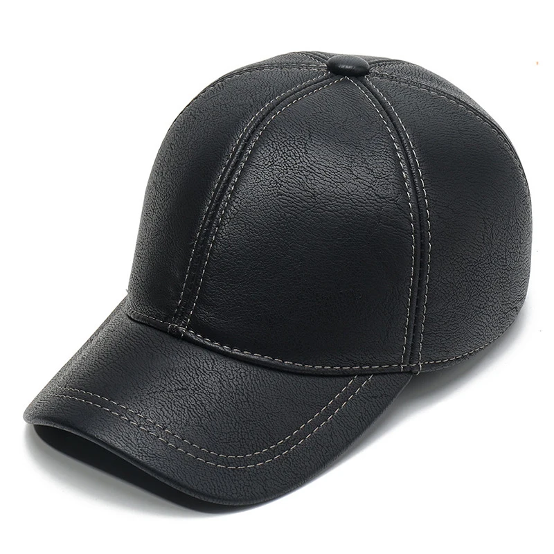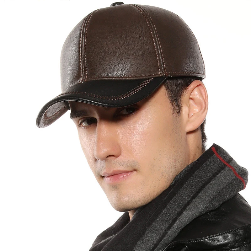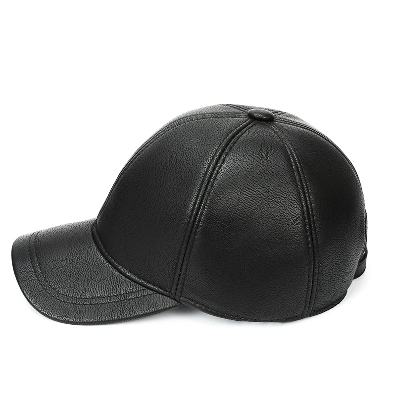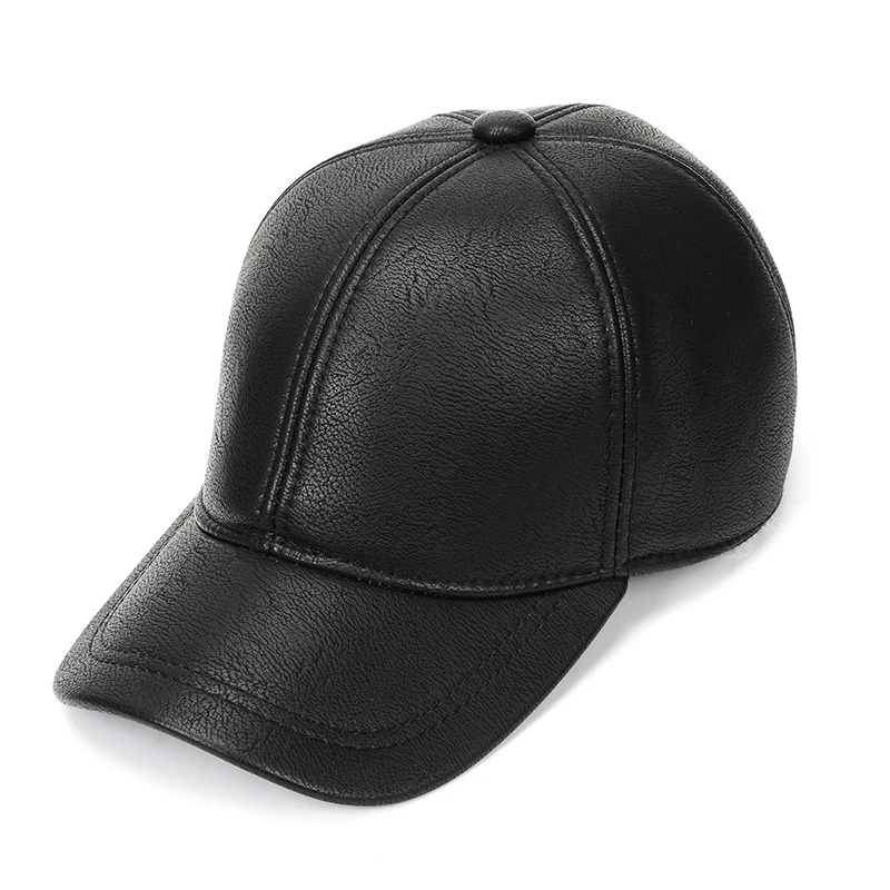 Мужская зимняя бейсбольная Кепка из искусственной кожи, шапка для взрослых на осень и зиму, теплая шапка для защиты ушей, одноцветная Простая мужская Кепка Snapback
