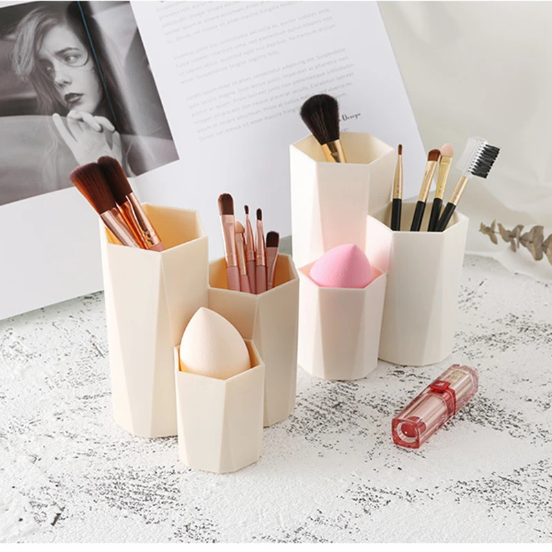 Использование: для хранения помад, косметики, косметических кистей и т. д. Большой объем дизайна, вы можете положить много кистей для макияжа и мелких предметов.