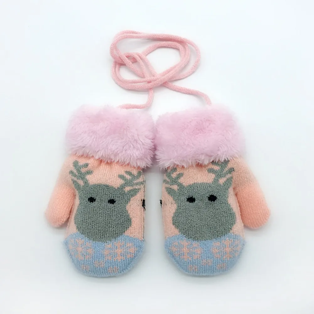 ARLONEET/Детские перчатки из хлопка с рисунком оленя; Зимние Утепленные перчатки; Вязаные детские повязки на голову для девочек и мальчиков; Висячие варежки; Перчатки