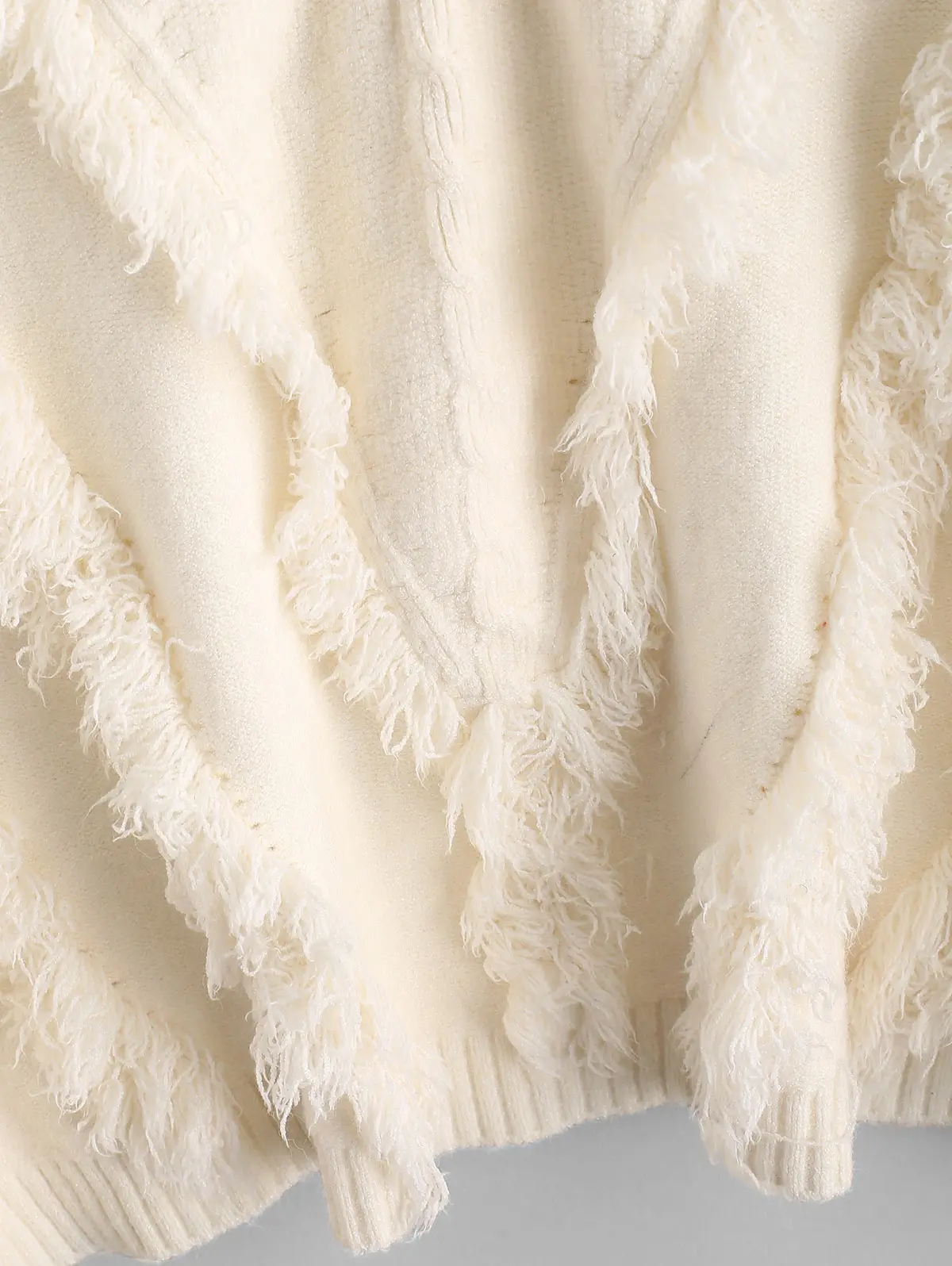 Product Details Type Pullovers Occasions Daily,Going Out Style Casual Fit Type Regular Length Regular Collar V-Neck Sleeve Type Drop Shoulder Sleeve Length Full Material Cotton,Polyester,Viscose Elasticity Elastic Pattern Type Solid Embellishment Fringed Seasons Spring,Winter,Autumn Weight 0.5000kg Package Contents 1 x Sweater