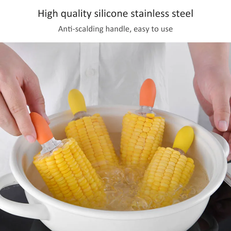 Прочная игла из нержавеющей стали защищает ваши пальцы от горячей пищи, просто вставляя вилку в конец кукурузного початка.