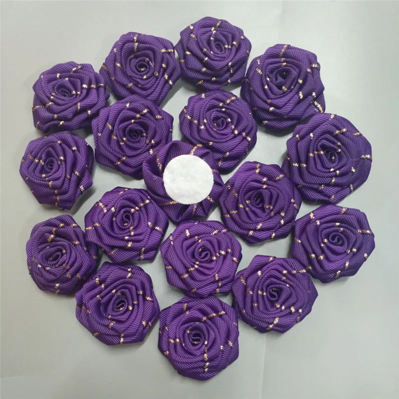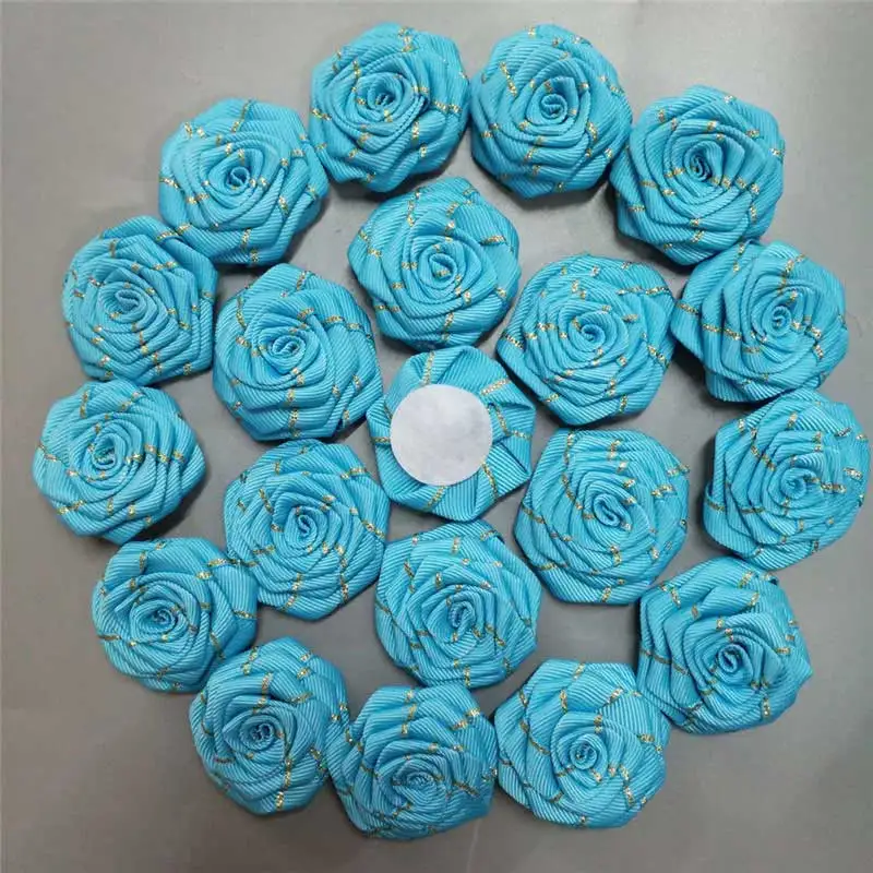 DIY ручной работы диаметр 4,5 см атласная роза искусственный цветочным рисунком, выполненным лентами Букеты Свадебные для волос в форме цветка Ткань аксессуары