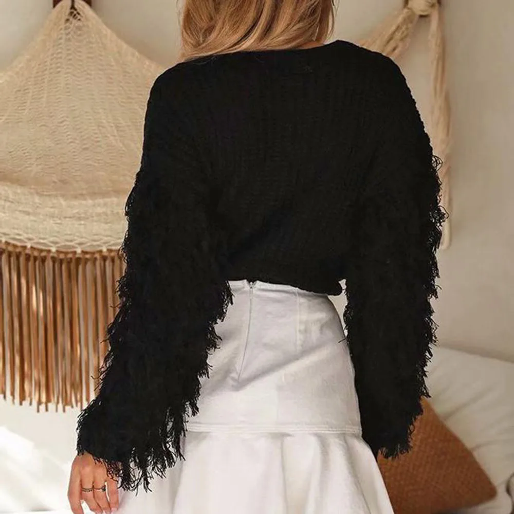 Женский Зимний вязаный свитер, Женский Осенний сексуальный Повседневный свободный Однотонный пуловер с v-образным вырезом, трикотаж, топы OL, джемпер pull femme