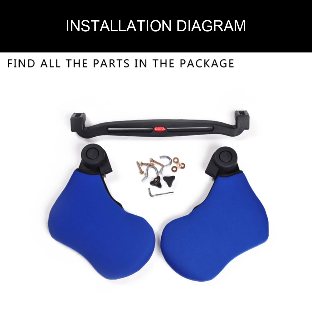 Комплектация: 1 * кронштейн, 2 * винт, 2 * гайка, 2 * крючок, 1 * гаечный ключ, 2 * боковая подушка, 4 * шайба